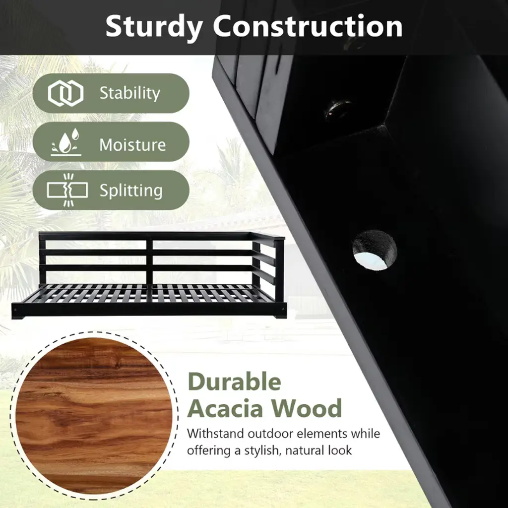 This Outdoor Swing Bed is Crafted from high-quality Acacia wood, it combines durability with a stylish natural look, making it perfect for gardens, patios, or porches. Supported by four sturdy 96-inch hemp ropes, this swing bed offers a weight capacity of up to 350lbs, ensuring both safety and comfort. Its minimalist country design, with an open-side rail, adds convenience and charm. Available in mutipule colors, this swing bed is a versatile addition to any outdoor space.