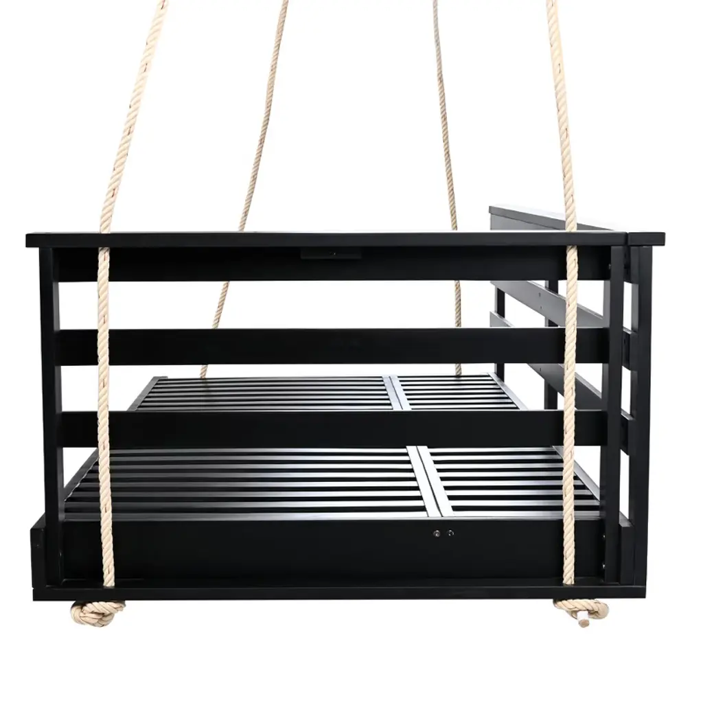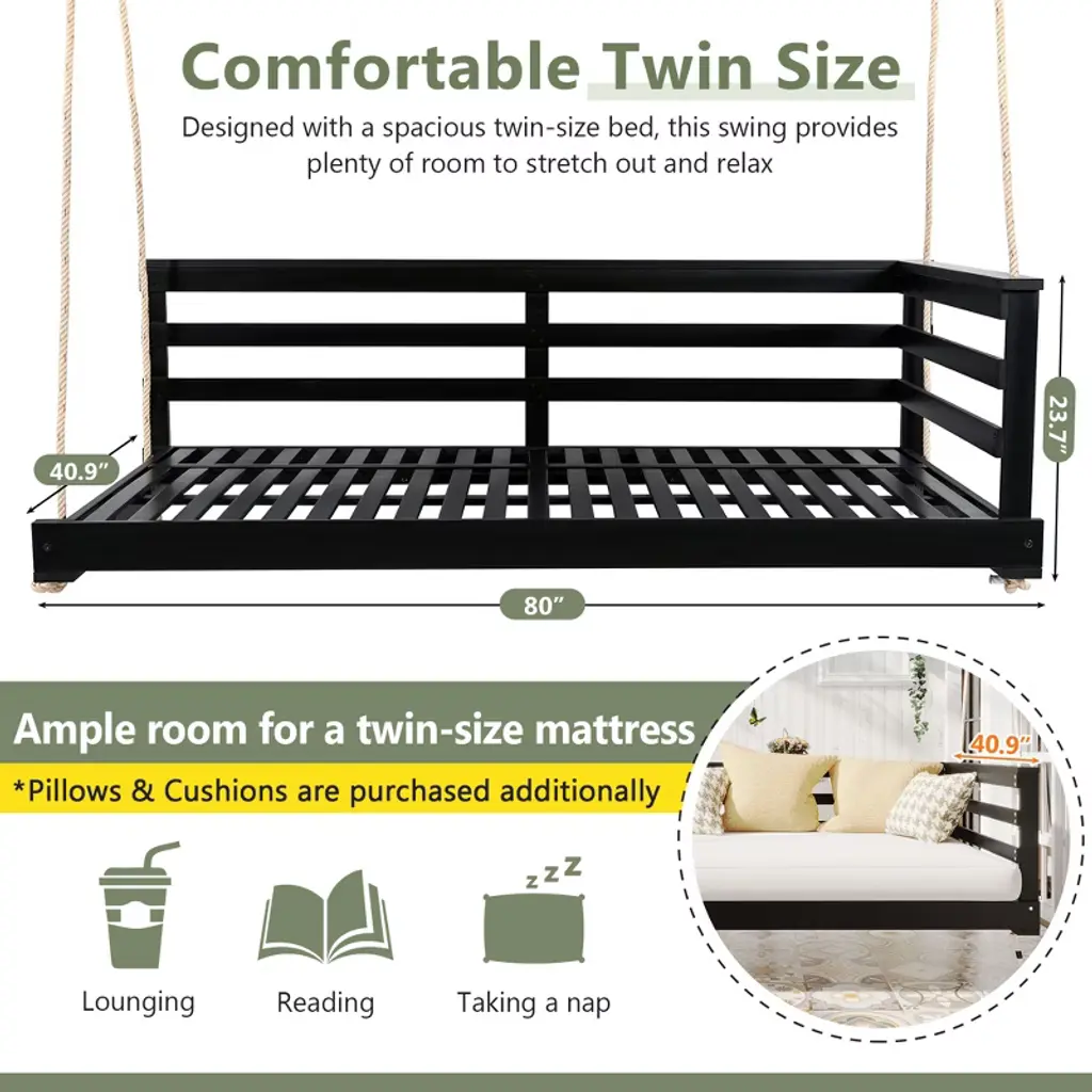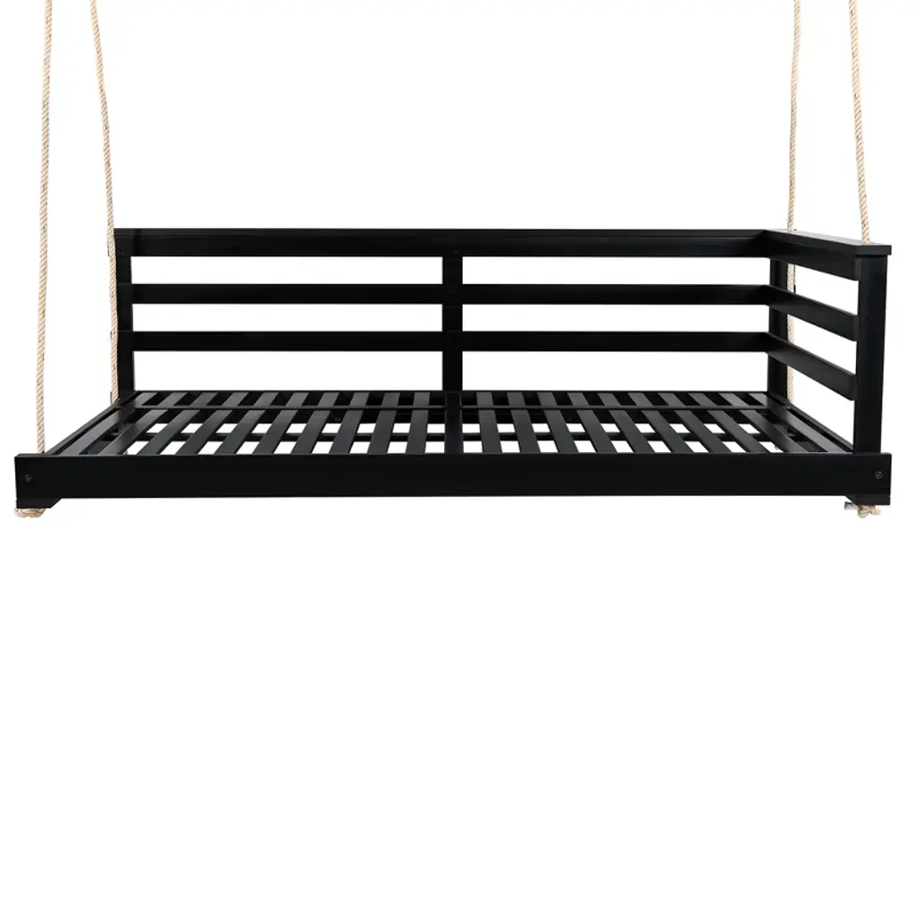 Yoocozz Wooden Patio Country Twin Size Swing Daybed With 4Pcs 96-inch Hemp Ropes-black