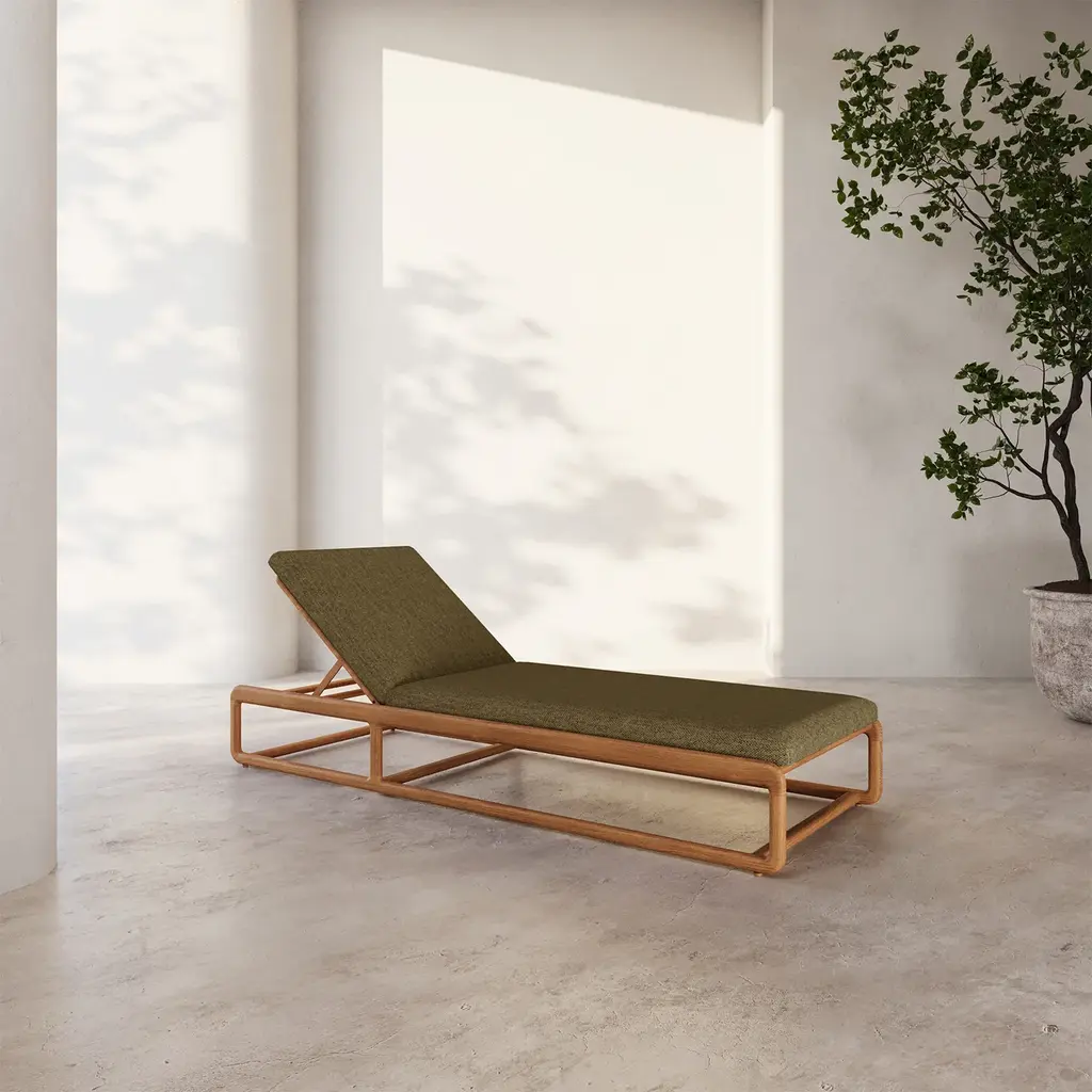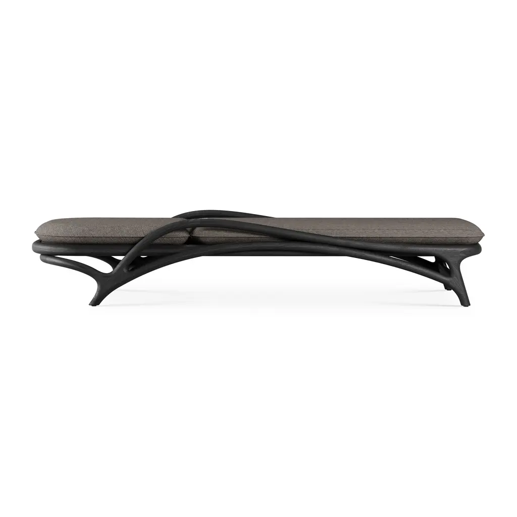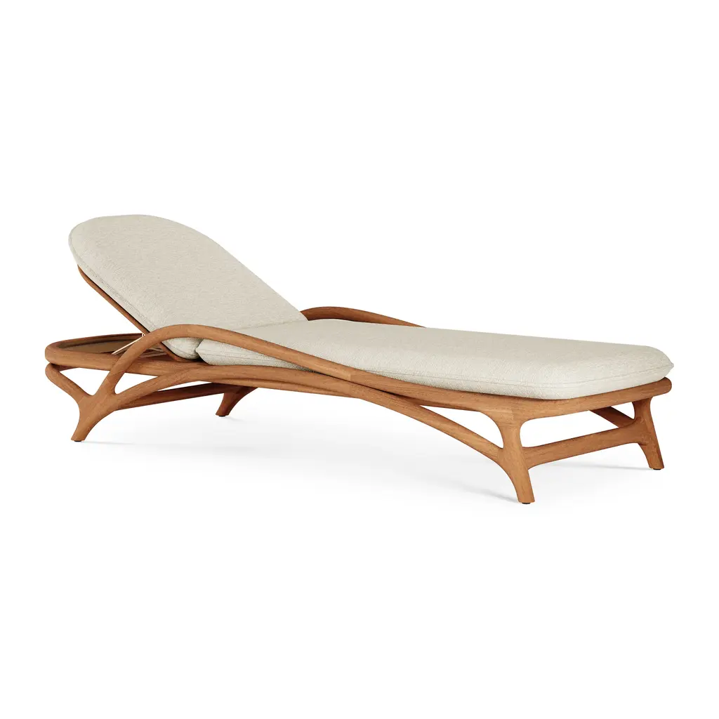Rooted in the meditative essence of nature, the Zen Outdoor Adjustable Lounger from Ethnicraft is designed to be a sanctuary for stillness. This beautiful lounger is defined by its solid teak frame, with a flowing, organic form inspired by the shapes of roots, vines, and branches. A unique, patterned metal backrest adds a subtle touch of ornamentation, while a thick, comfortable cushion with a quick-dry core invites you to pause and unwind. A fusion of sculptural form and premium, all-weather materials, it brings a sense of effortless grace to any outdoor space. Highlights: