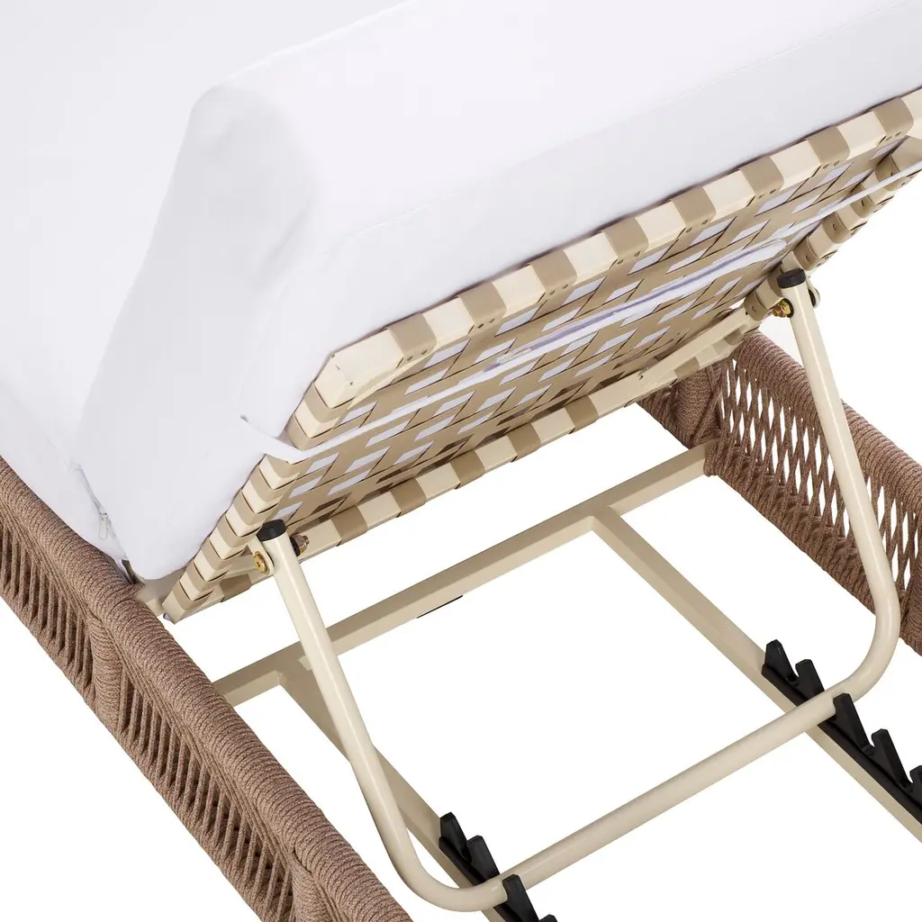 Transform your outdoors into a staycation oasis with this stunning Zephyr Sunlounger. Coastally styled with woven natural rope details and a matching cushion, Zephyr is the ultimate epitome of relaxation.
