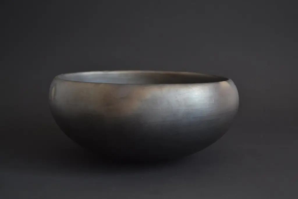 Oaxacan black clay 19cm bowl handmade tableware burnished barro negro Oaxaca. The soft and rich color makes this side plate a stylish partner to bread, butter or more spectacular starters.Handmade in Oaxaca, a state rich in pre-hispanic pottery tradition, the Barro Negro (black clay) style has a tactile finish with a subtle shine. The workshop takes the natural clay and cleans it by filtering it for 20 days. The clay is then smoked to create the black color and burnished rather than glazed, by polishing the surface with a quartz crystal until it has a glossy finish with a warm glow. The pieces are then fired in underground pits or kilns, using a wood fire.Important- These are food safe but it should be noted that with use they will become permanently stained if any foods with oil or color are put on them which is part of the unique magic of the natural background of its production, this characteristic is what makes that world known restaurants use them in their menu as you can not get this effect with any other Industrial type of production.