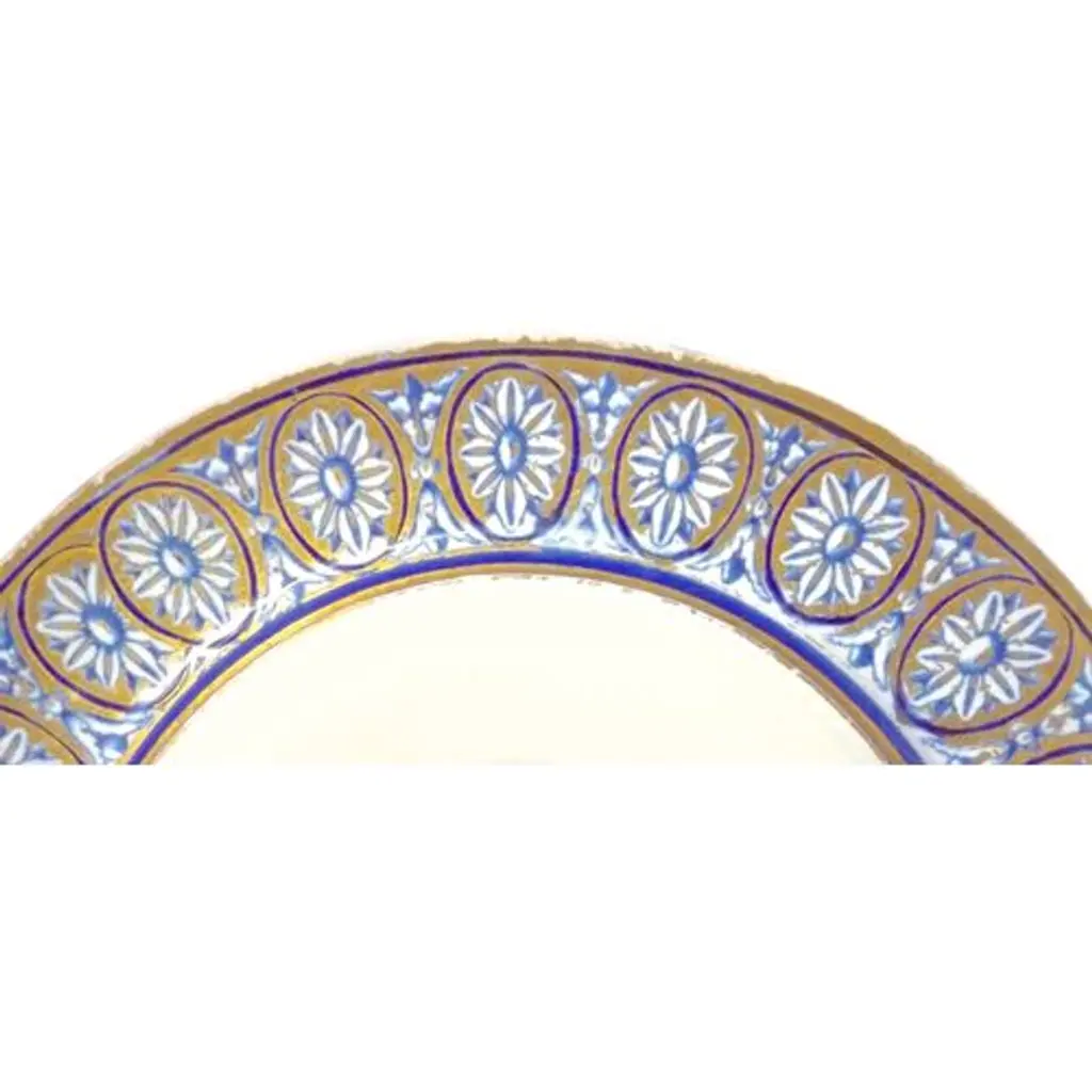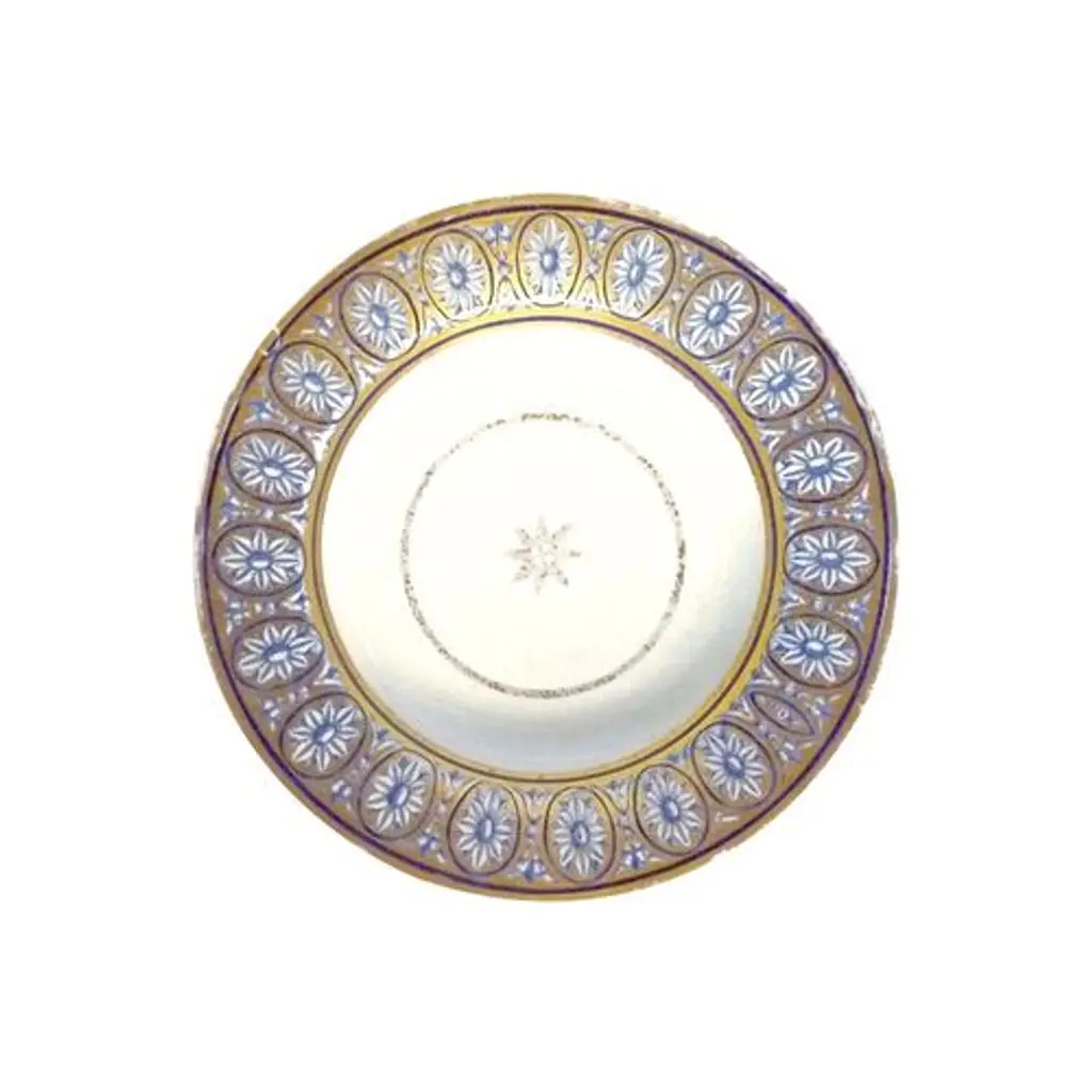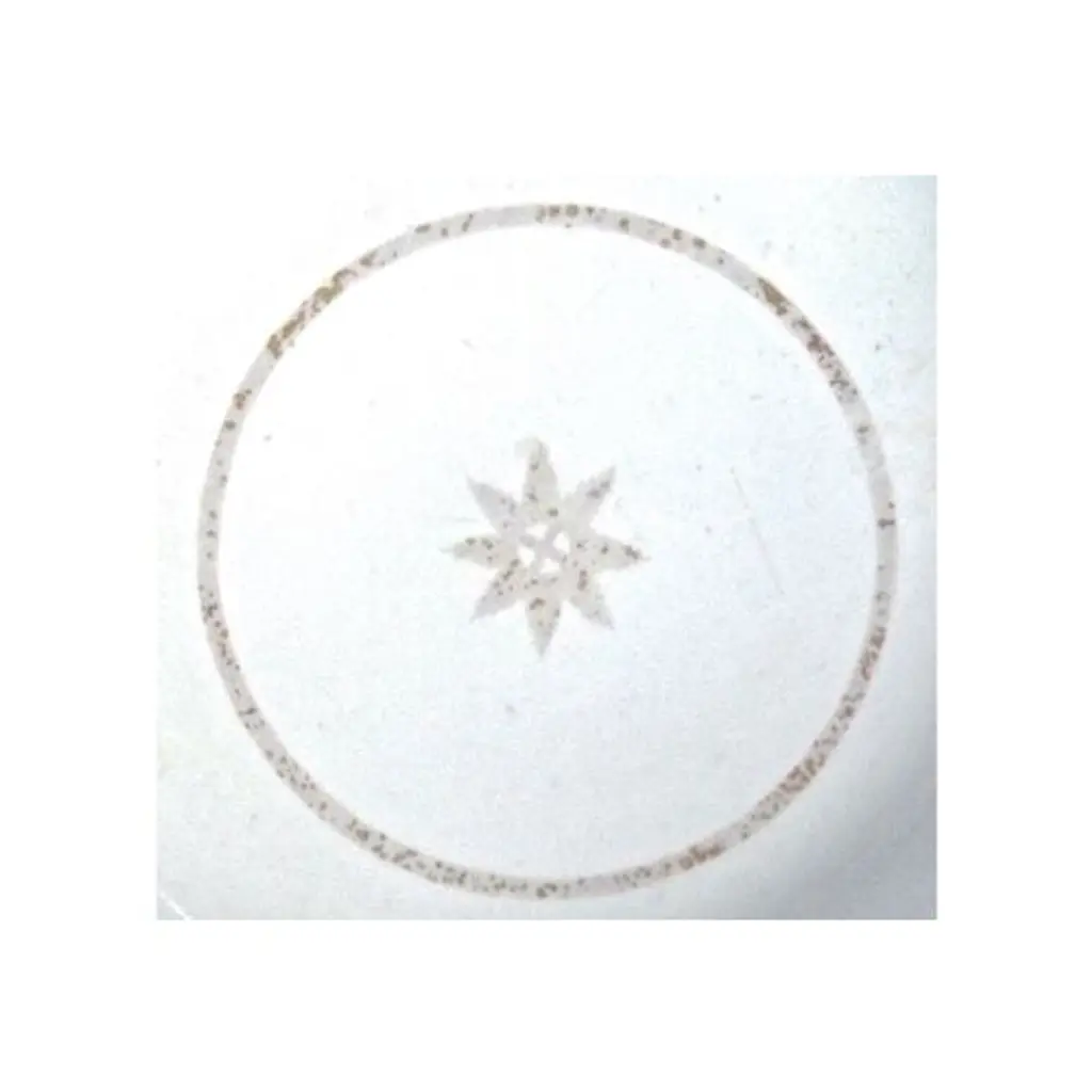 Pair of 18th-century porcelain gilt star medallion bowls. Worn star design in the center is surrounded by perimeter frieze design of gilt stylized starburst medallions. No maker's mark. For decorative use only. Faded and worn gilt.