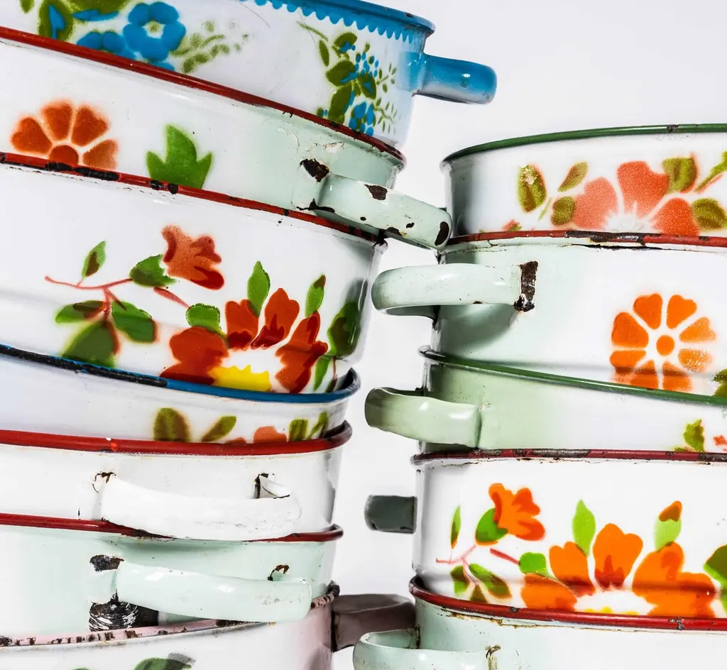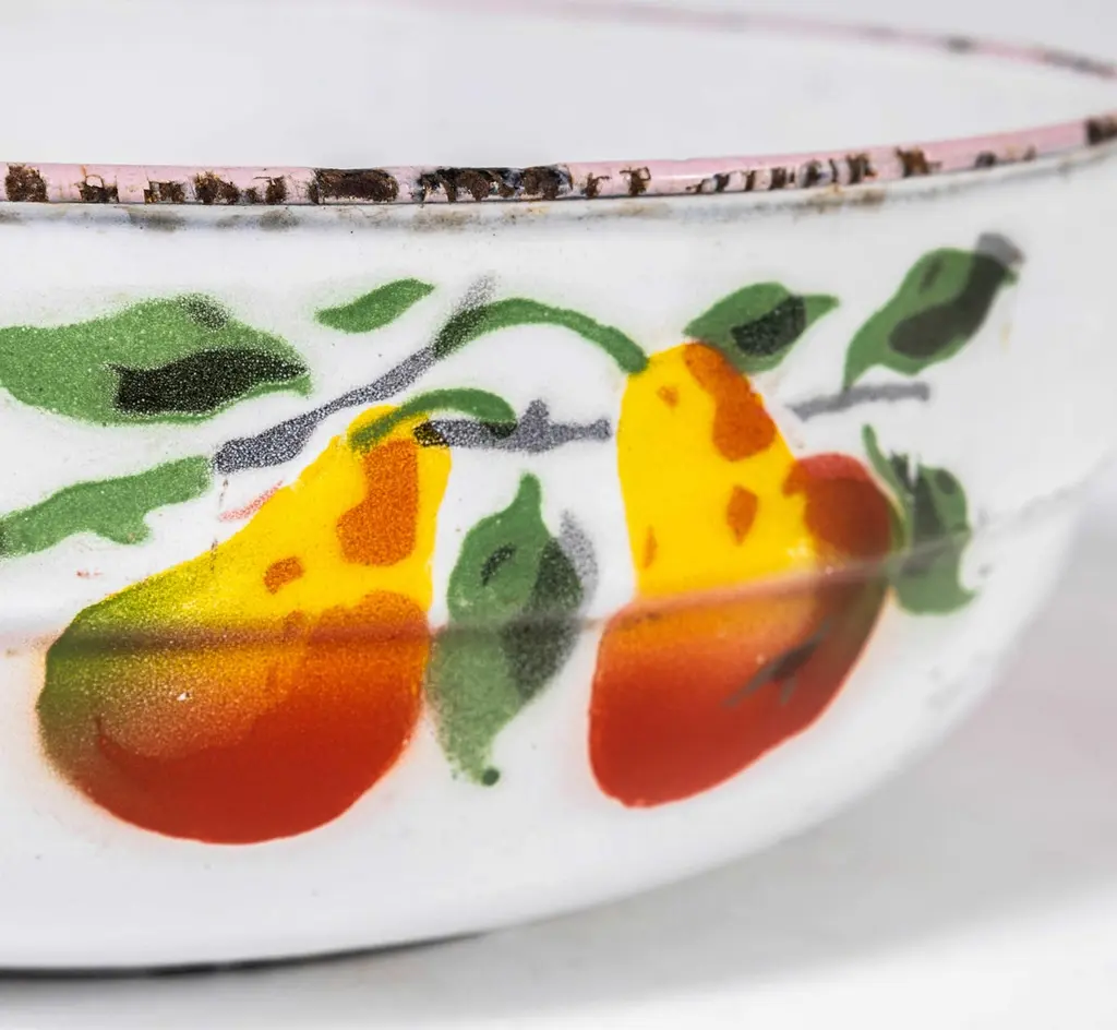 1950's Vintage Decorated Enamel Bowls - Medium. Good quality vintage Hungarian enamelled bowls. Listing is for one bowl. Random selection.Workshop Report:Our workshop team inspect every product and carry out any needed repairs to ensure that everything leaves us serviced and maintained ready for many more years of life. All of our vintage products show the rich beauty and history of their life with the knocks and bumps of many years of use and we try to minimise restoration to keep every piece as original as possible.Date:1950'sMaker:Handmade – HungaryDimensions:35cm(w) x 35cm(l) x 11cm(h)