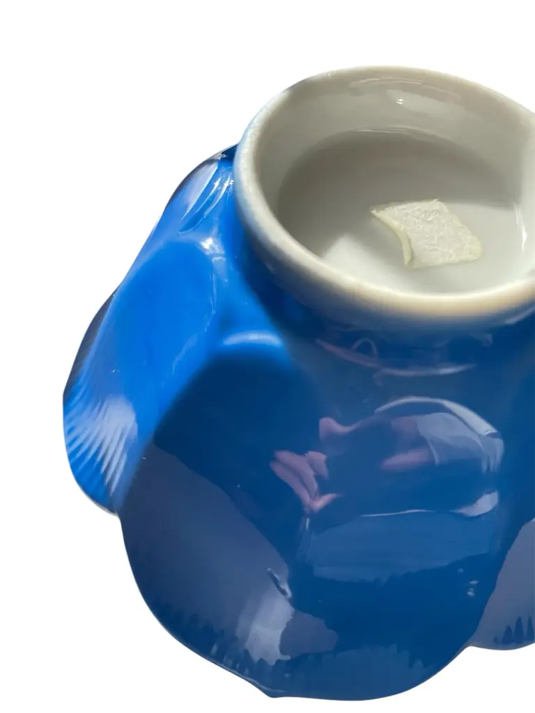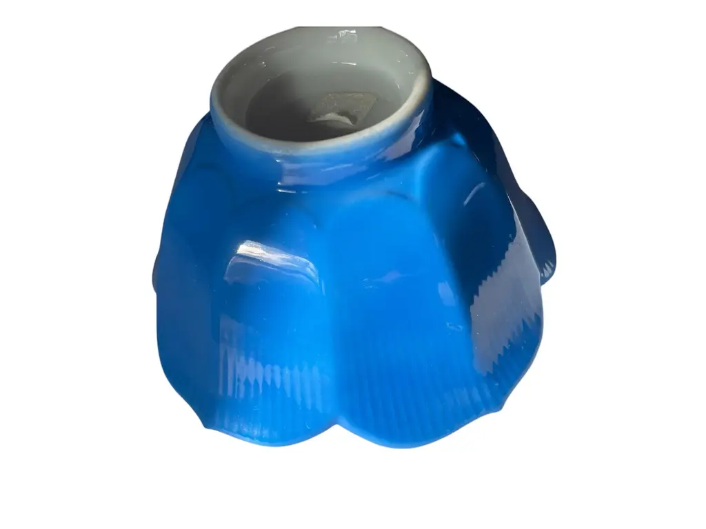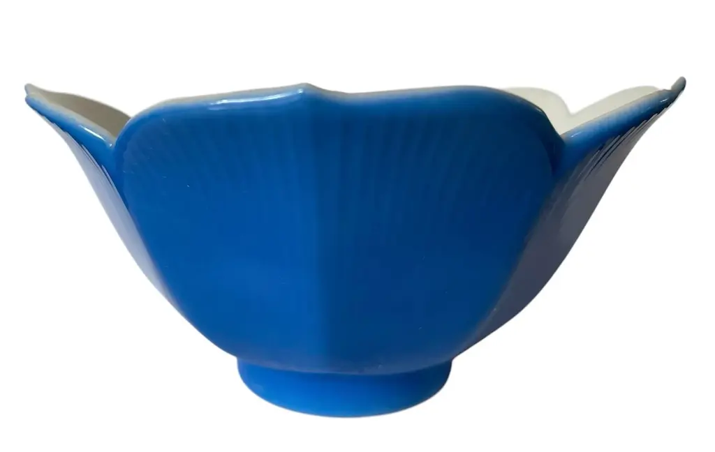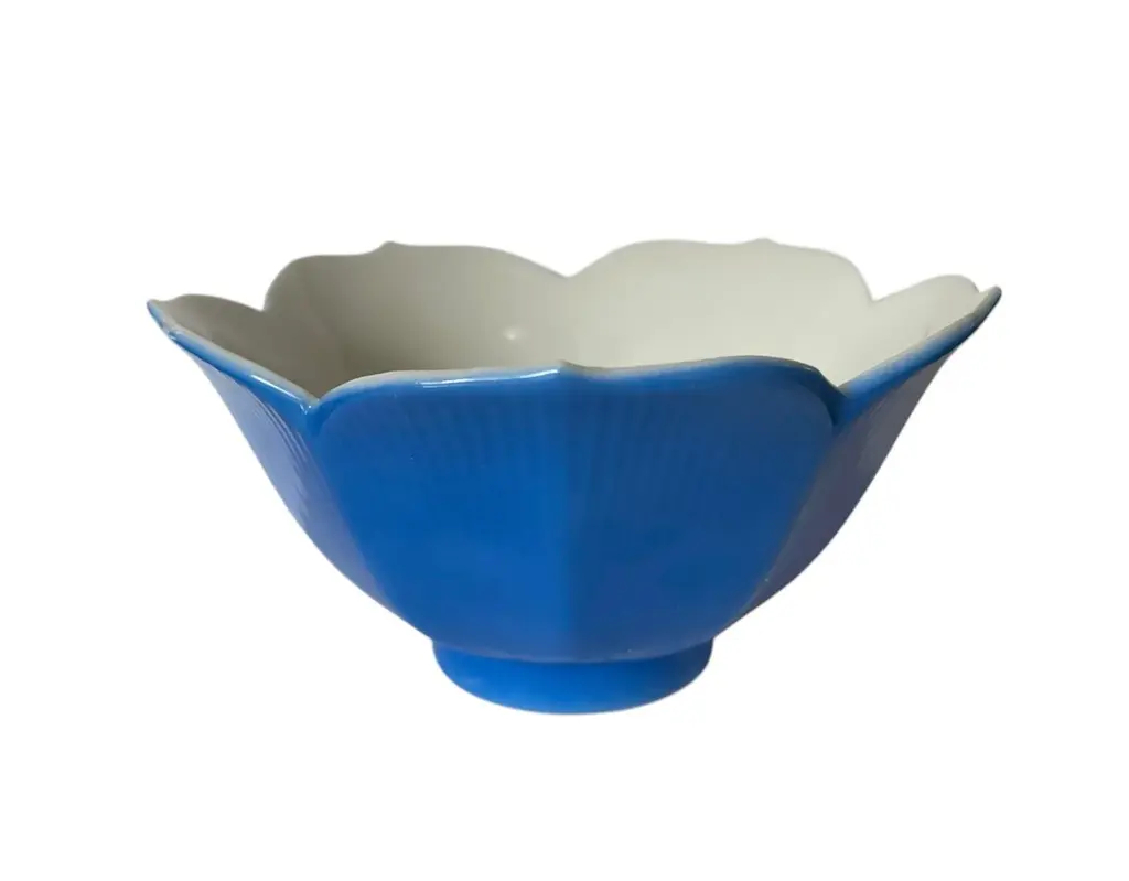 Stunning Japanese lotus bowl from the 1960s. The design of the bowl is of lotus petals with a gorgeous ribbed royal blue exterior.
