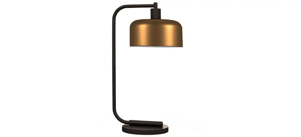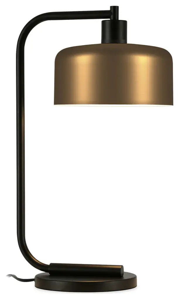 With this 20-inch black metal arched table lamp with brass bowl shade you can bring in design to any space along with adding some ambient lighting. The base of this lamp is made of metal finished in a black tone. The brass shade has a bowl shape and is made of metal, which makes it a perfect choice. A sophisticated take on a classic, this arched table lamp is a great option for a unique look. The light that this lamp throws is soft and warm to elevate the look of most any space in your home. Bring some lite and good vibes into your space with this updated and stylishly designed lamp. 20-inch H x 12-inch W x 8-inch D