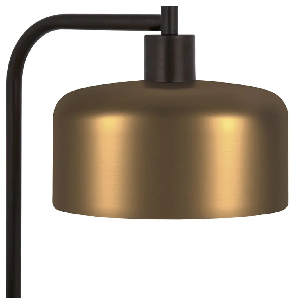 20" Black Metal Arched Table Lamp With Brass Bowl Shade