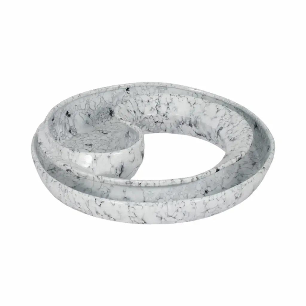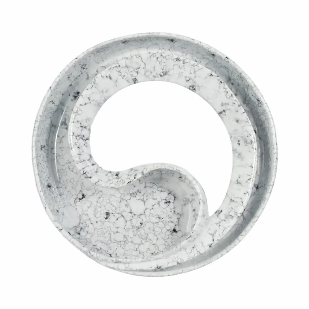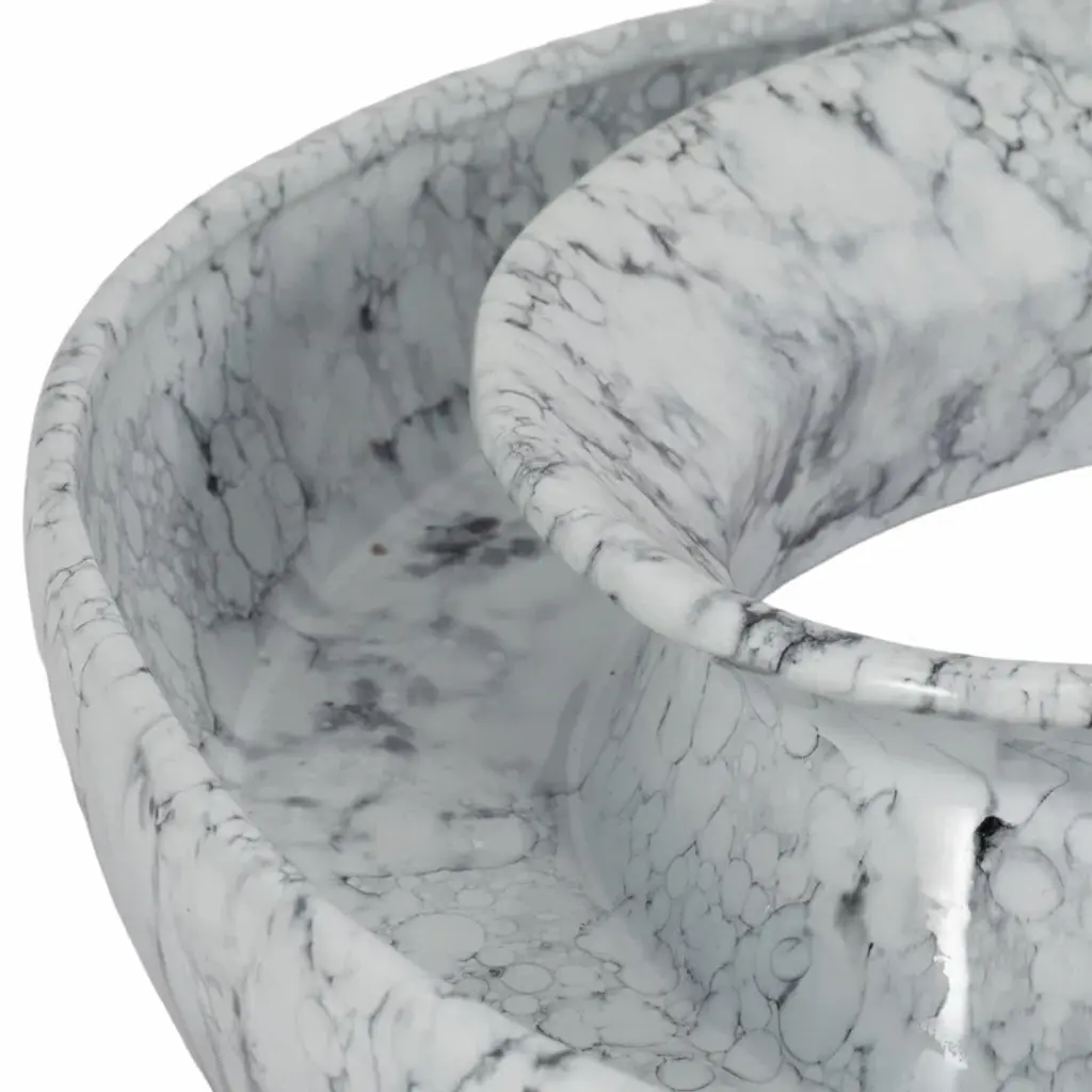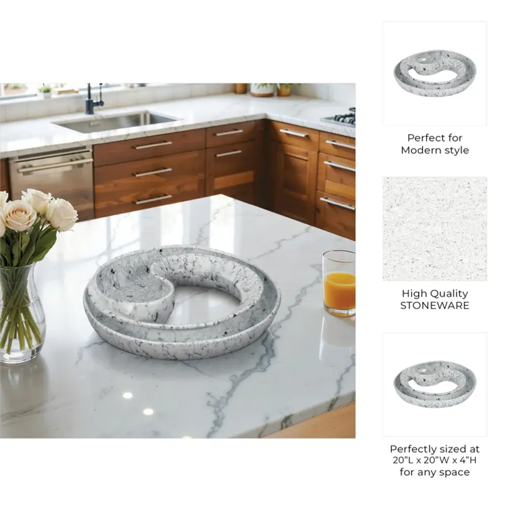 Elevate your home decor with this modern white stoneware vase featuring a unique yin-yang inspired shape and a smooth glazed finish that blends artistic charm with everyday function. Measuring 20 inches wide by 4 inches tall, this sculptural accent piece doubles as a versatile decorative bowl perfect for holding fruit, potpourri, or simply serving as a statement centerpiece on a dining table, kitchen island, or shelf. Crafted from high-quality stoneware with a marbled texture, it offers a contemporary yet timeless design ideal for minimalist or modern interiors. Its lightweight construction makes it easy to move while still providing the sturdy reliability you expect from quality decor. The sleek surface is simple to wipe clean, addressing maintenance frustrations and ensuring it keeps its pristine look year-round. Whether you are refreshing your space or shopping for a unique gift, this eye-catching vase adds elegance and functionality to any setting. Redefine your style with this must-have decor piece today.