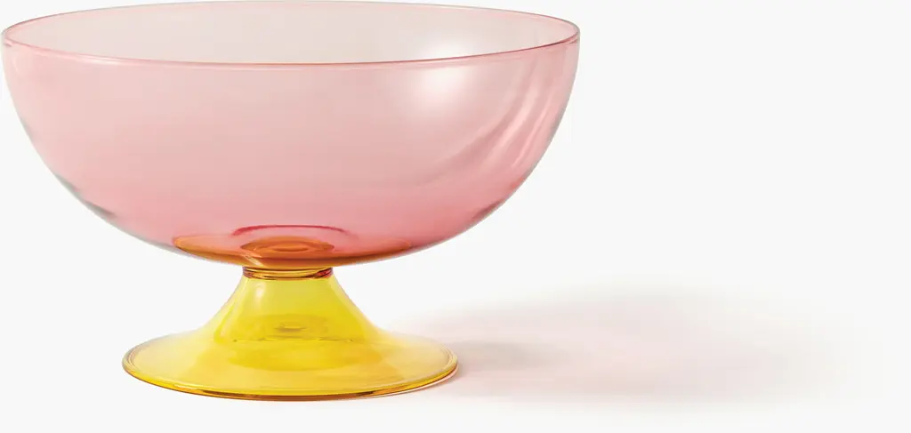 21st century Karim Rashid Coppa bowl transparent Murano glass various colors.Designed by Karim Rashid, Coppa is a small glass container with round, sinuous, markedly colored shapes: deep pink the central body, ruby red the base. A cheerful and decisive contrast made even more fascinating by the transparency and the reflections of Murano glass. Suitable for small objects, colored bouquets, single flowers, Coppa is available for customization in the 21 shades of the color chart:Transparent blown glass01. Ice crystal 02. Milky white 03. Honey 04. Ruby Venice 05. Amethist pink 06. Coffee 07. Amber yellow 08. Capri yellow 09. Mandarin orange 10. Oriental red 11. Green apple 12. Caribbean green 13. Green lagoon 14. Emerald green 15. Blue Mediterranean 16. Peacock blue 17. Ocean blue 18. Florence purple 19. London grey 20. Black gondolaSpecial processing techniques21. Gold leaf.