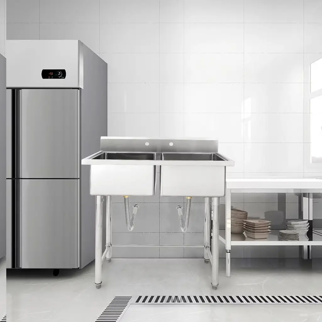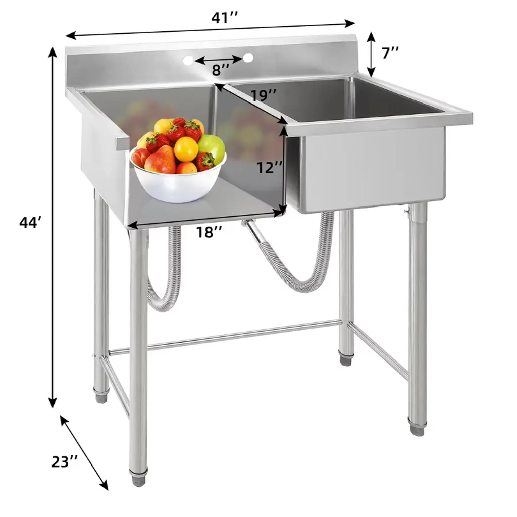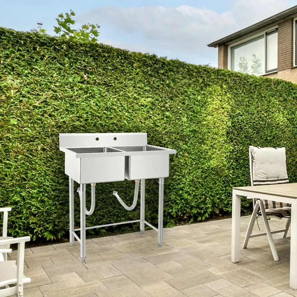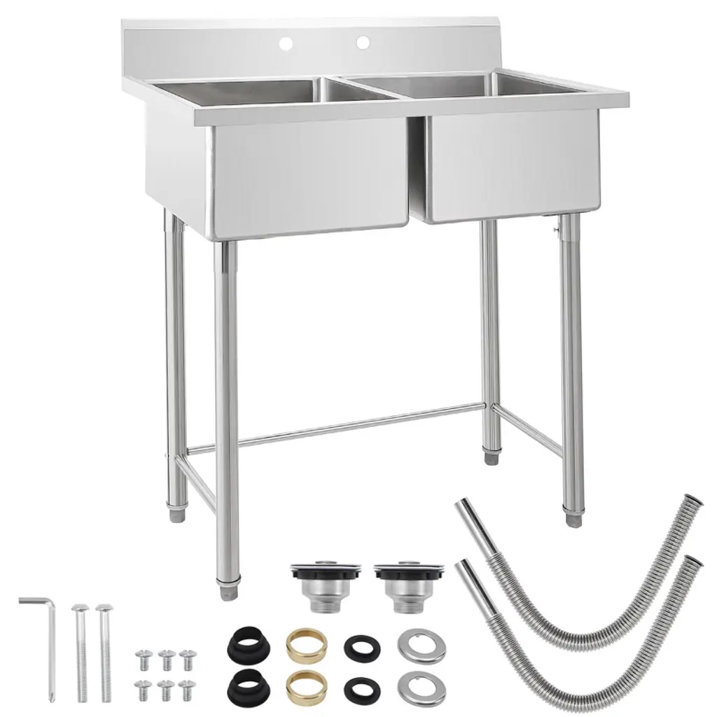 Feature: Upgrade your workspace with this 36"/41L stainless steel utility sink featuring two compartments for efficient cleaning and prep work. NSF certified for commercial use, it is ideal for restaurants, garages, laundry rooms, or any utility area. The durable stainless steel construction resists rust, corrosion, and heavy use, ensuring long-lasting performance. Freestanding design allows easy placement without additional cabinetry, while the double bowl setup provides versatility for washing, rinsing, and organizing tasks. Easy to clean and maintain, this utility sink is a reliable addition to any professional or home environment.Package Included: 1 36"/41L Stainless Steel Double Bowl Utility Sink