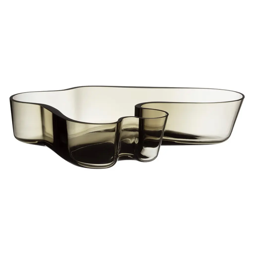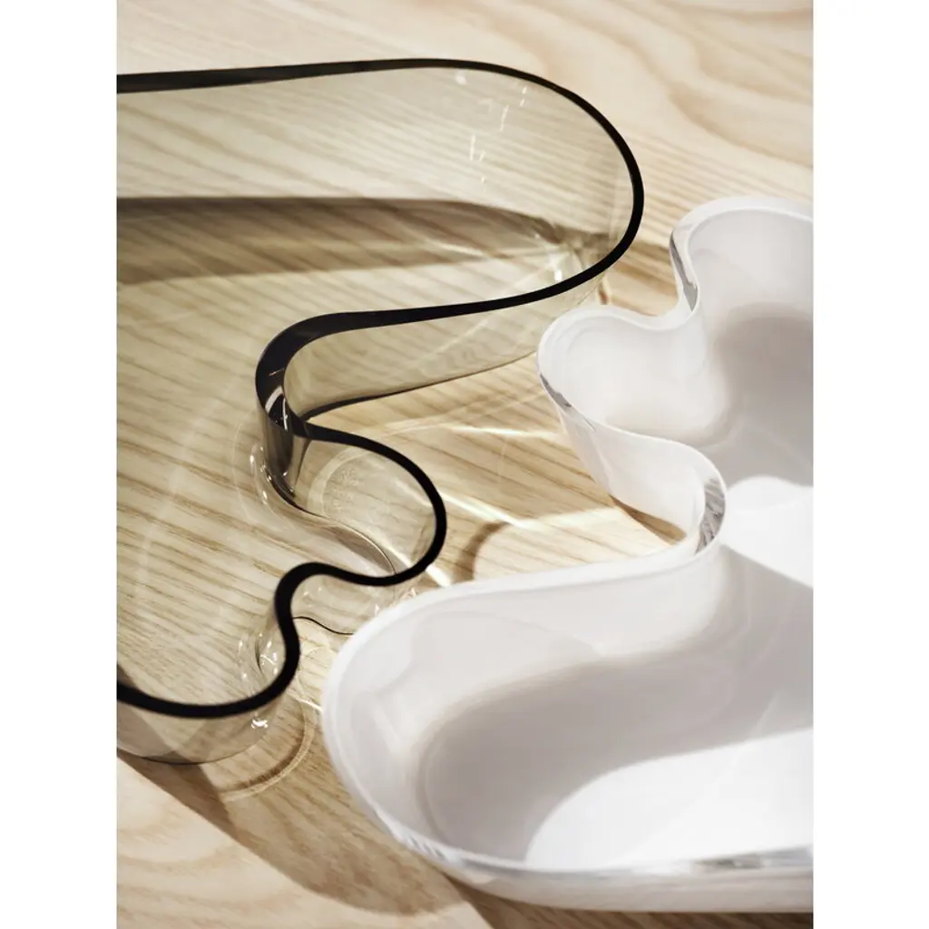 The Aalto bowl by Iittala is based on Alvar Aalto’s original drawings from the 1930s, but its size has been updated to better suit modern needs. The glass bowl can be used as a display for jewelry or other personal objects, or for serving snacks and sweets. The distinctive shape of the glass bowl resembles the organic form of the classic Aalto vase, and no wonder, as it belongs to the same glassware collection Alvar Aalto created for the World Fair in Paris in 1937. Today, the Aalto vases and bowls are manufactured in a range of colors and designs. Like the iconic Aalto vases, the Aalto bowl is mouth-blown by master glassblowers at the Iittala glassworks in Finland. After the blowing process, the vase is hand-cut and finished to its final form through several polishing. As the item is handmade, we recommend hand-washing it.