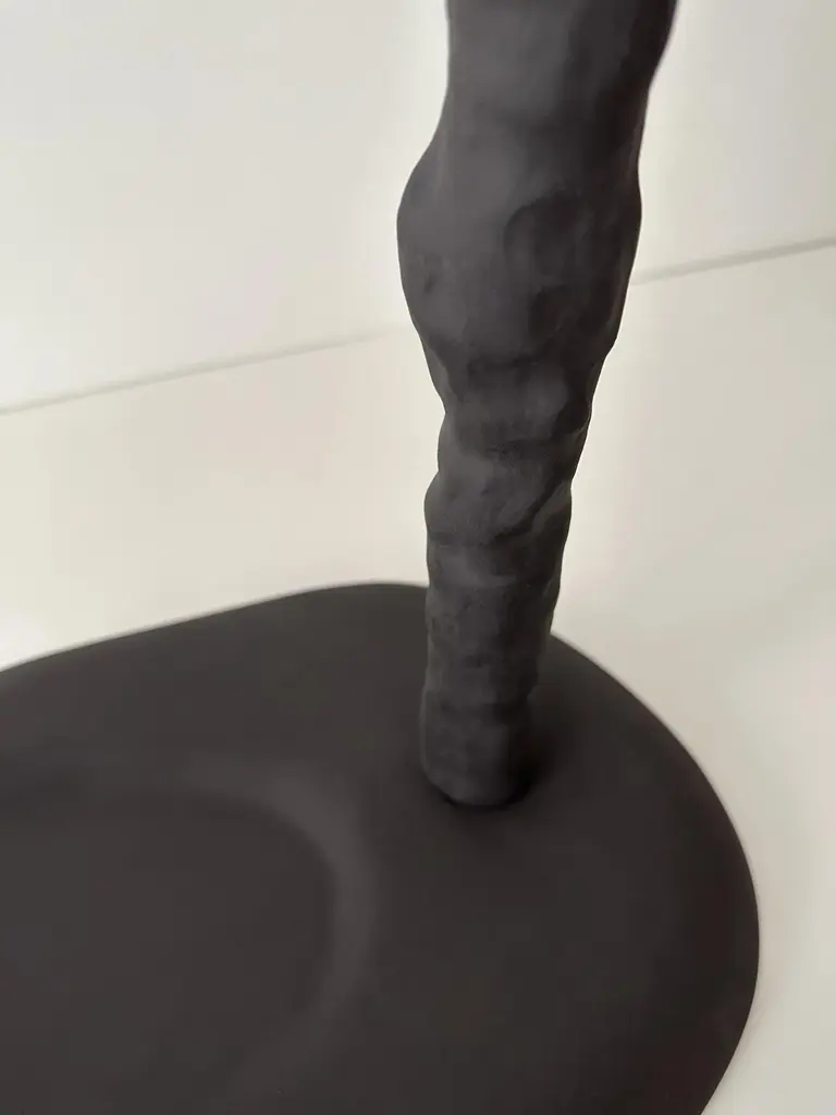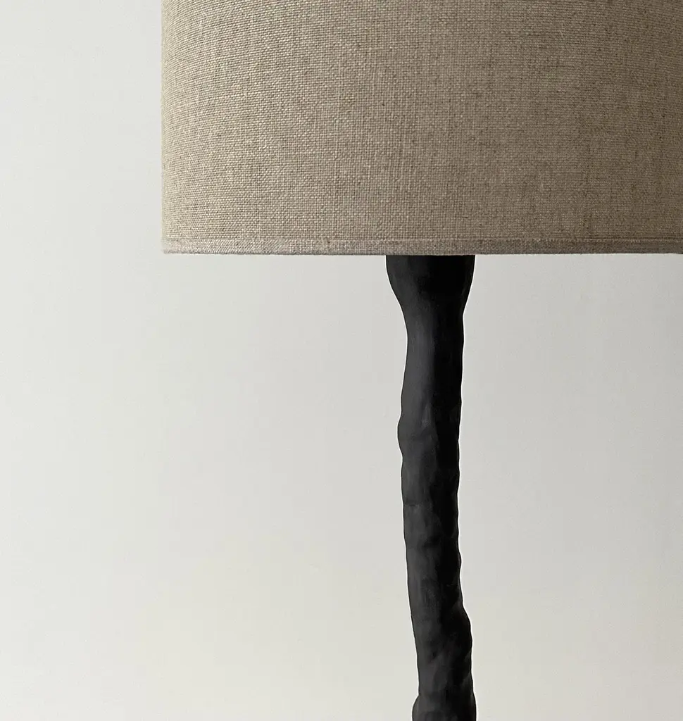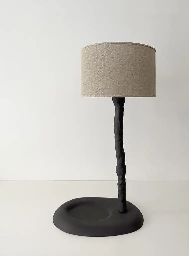 Abstract wood trinket bowl lamp by Atelier Monochrome.One of a kind.Materials: Ceramic / Sandstone.Dimensions: H70 x D 28 x W 40 cm.All our lamps can be wired according to each country. If sold to the USA it will be wired for the USA for instance.Atelier Monochrome is a space dedicated to the artisanal creation of unique porcelain pieces. The designer Myrtille Ronteix creates both custom-made pieces and collections. Among its buyers are architects, designers, boutiques and individuals. The workshop is also a meeting place, where Myrtille collaborates with ceramists, cabinetmakers, weavers, and all sorts of other artists and artisans. The designer designs collections of flowers and jewelry, wall installations and various accessories for tableware, produced in limited series according to her inspiration. Between strength and subtlety, minimalism and refinement, his creations have a refined aesthetic, a signature recognizable at first glance. Inspiration If nature is at the heart of her work, she is also greatly inspired by Scandinavian design, Japanese purity, as well as the refinement and poetry of the Italian Renaissance. During her stay in the United Arab Emirates, she discovers the heritage of the land, the fauna, the deserts and the mountains. There she meets Bedouins and learns from these women who perpetuate traditions while striving to preserve their knowledge.The technique Porcelain is a clay rich in kaolin whose whiteness and translucency give it a most contemporary charm. Mineral and sensual material, it is an inexhaustible source of inspiration for this artist.Myrtille works the land like a graphic designer works on a blank page; folds, cuts, embosses, applies patterns and adds natural materials such as wood or more sophisticated materials such as gold and precious stones. She likes to combine ancestral craftsmanship with current techniques such as laser cutting or 3D printing.Each piece is made by hand in the pure tradition of luxury craftsmanship.