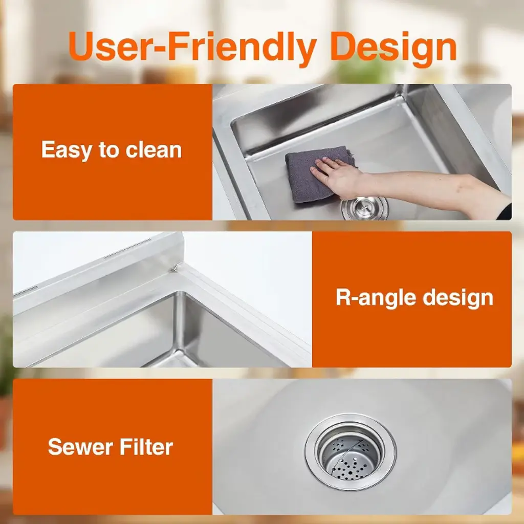 Acekool’s double compartment utility sink gives you extra flexibility for any space, from home kitchens to busy commercial settings. The side-by-side bowls let you multitask with ease—rinse dishes in one and prepare veggies in the other. Its roomy design fits well in laundry rooms, outdoor patios, garages, and workshops. Smooth stainless surfaces resist grime and are easy to clean, supporting hygiene in high-traffic areas. This commercial-style sink is designed to resist rust, warping, and stains, so it stands up to heavy daily use. The included basket strainer promotes fast drainage and helps prevent blockages, so cleaning is always efficient. Simple assembly and a versatile look make this sink a practical solution for any workspace needing extra washing, soaking, or prepping room.