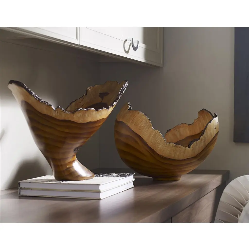 Ailbhe Rustic Lodge Burled Dark Faux Wood Round Decorative Bowl
