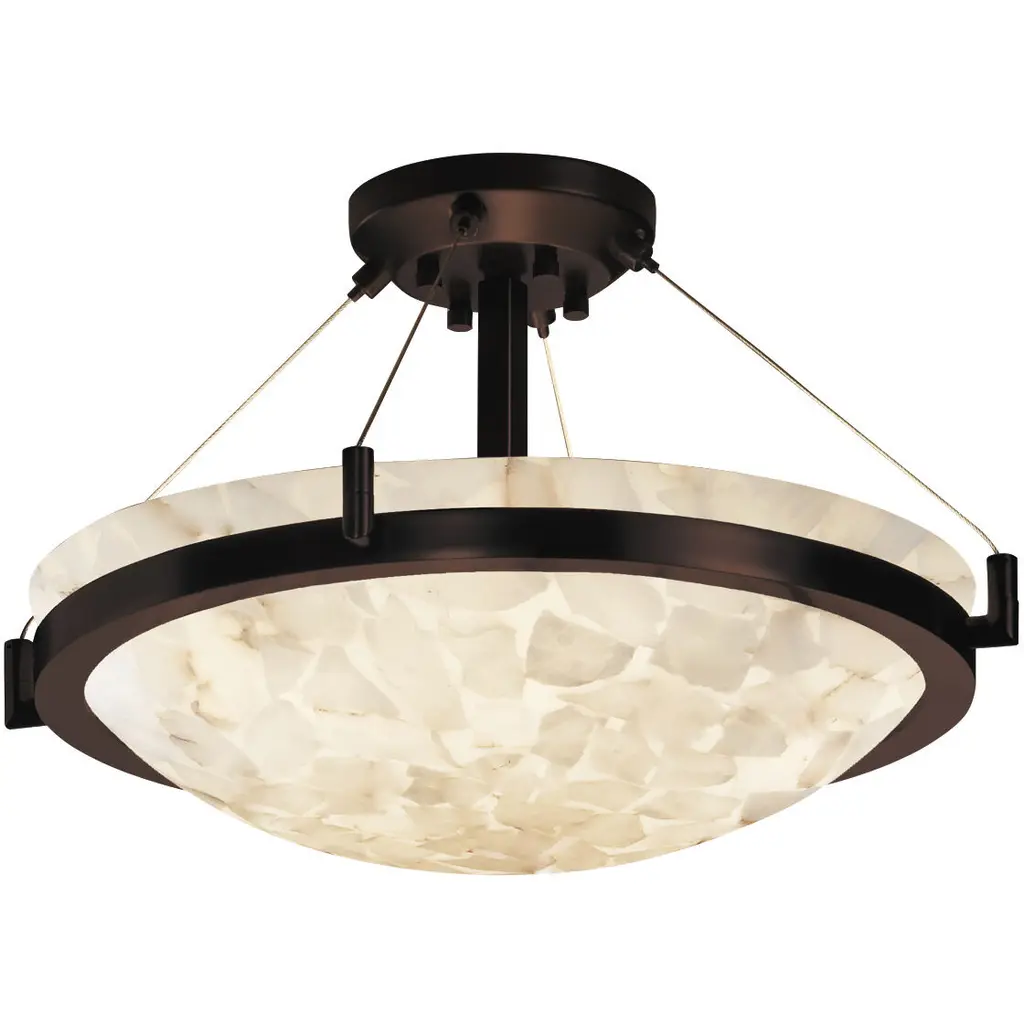 Alabaster Rocks!™ Collection - 36" Round Semi-Flush Bowl w/ Ring - Dark Bronze - Alabaster Rocks - E26