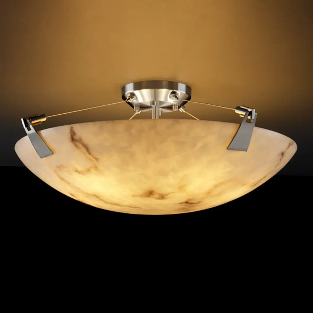 Alabaster Rocks Led 27 Inch Brushed Nickel Semi-Flush Ceiling Light In 5000 Lm Led, Square Bowl