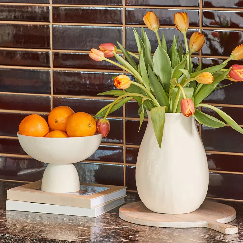 Aluminum Pedestal Bowl In Cream, 10.5 In