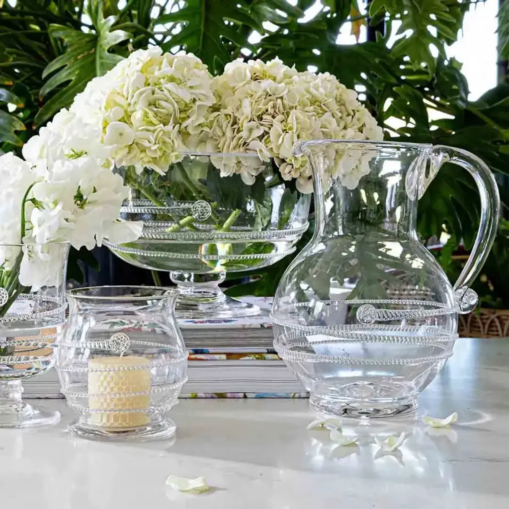A show-stopping centerpiece bowl, this footed vessel shines a spotlight on whatever you are serving - from decadent chocolate mousse to festive rainbow-hued parfait or sitting permanently in your dining room. Expertly hand crafted by our master glass artisans, it is festooned with our iconic, uplifting swirl and buttoned with a solitary berry. Based in Connecticut, Juliska is committed to bringing elegant European design into our modern homes. Since its founding in 2001, when David and Capucine Gooding began by working with artisans outside of Prague to reproduce antique Bohemian glass pieces, every piece from Juliska has shared a rich heritage spanning six centuries of European design. Juliska's creations are timeless, romantic and effortlessly chic.