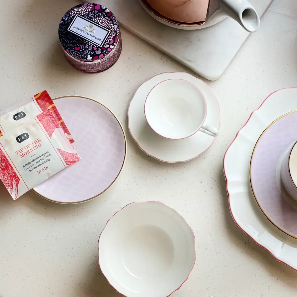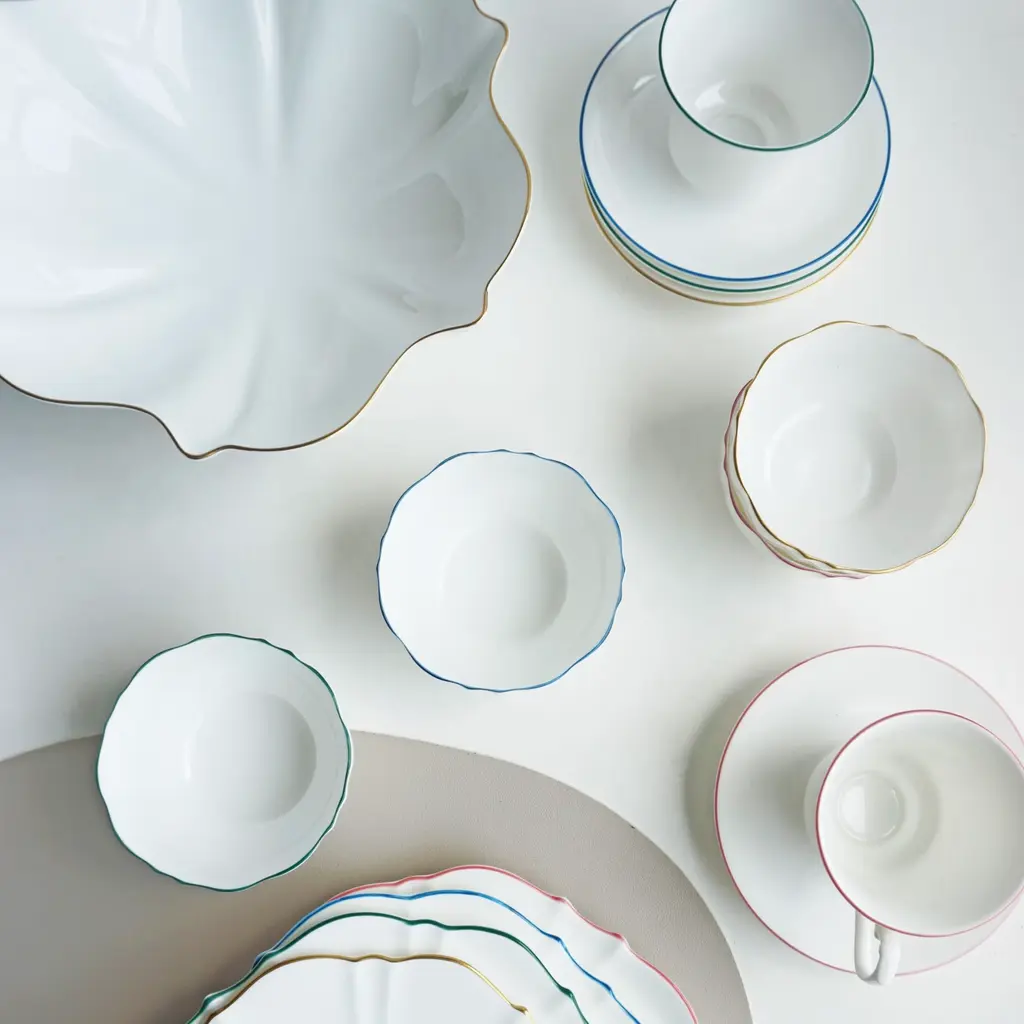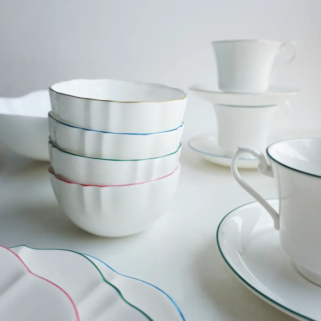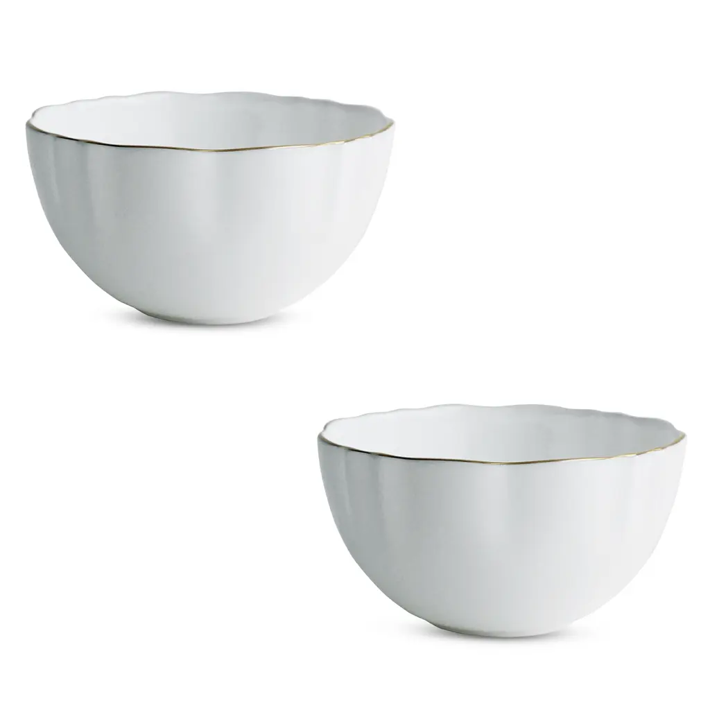 This collection takes its inspiration from the beloved movie character and melds the contradictions of her personality into one unique collection. The Amelie Collection features beautifully shaped dishes that truly stand out but counters this with the striking simplicity of white of Fine Bone China with a hand-painted color as an accent for the rim. Full of possibilities for mixing and matching among different colors to create one’s own personal set.Ideal for fruit, nuts, and riceOne set of two small bowls per box Fine Bone China with hand-painted rimAmelie Collection
