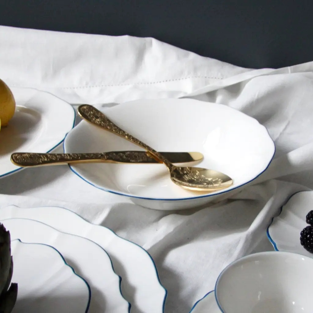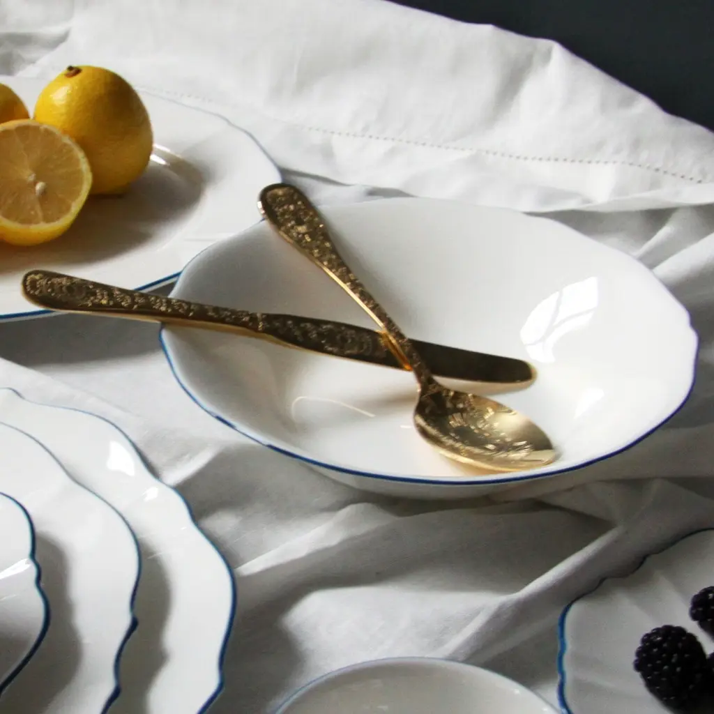 This collection takes its inspiration from the beloved movie character and melds the contradictions of her personality into one unique collection. The Amelie Collection features beautifully shaped dishes that truly stand out but counters this with the striking simplicity of white of Fine Bone China with a hand-painted colour as an accent for the rim. Full of possibilities for mixing and matching among different colours to create one’s own personal set.Ideal for soup and pastaOne set of two bowls per box Fine Bone China with hand-painted rimAmelie Collection