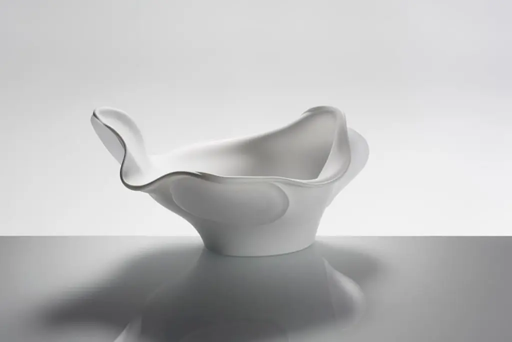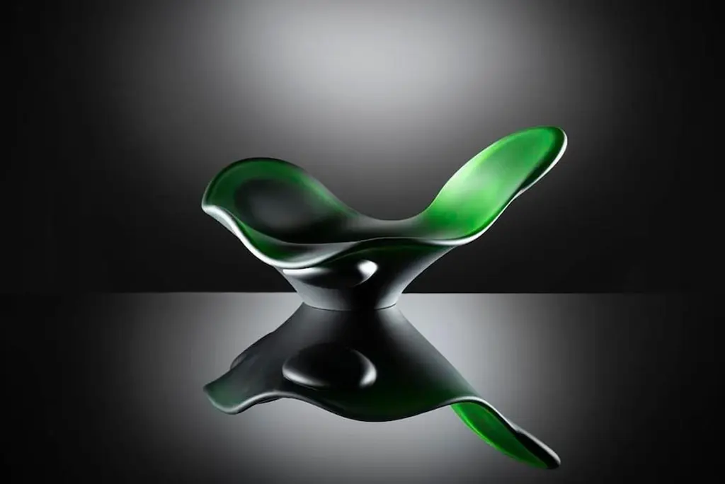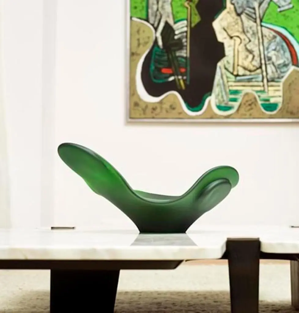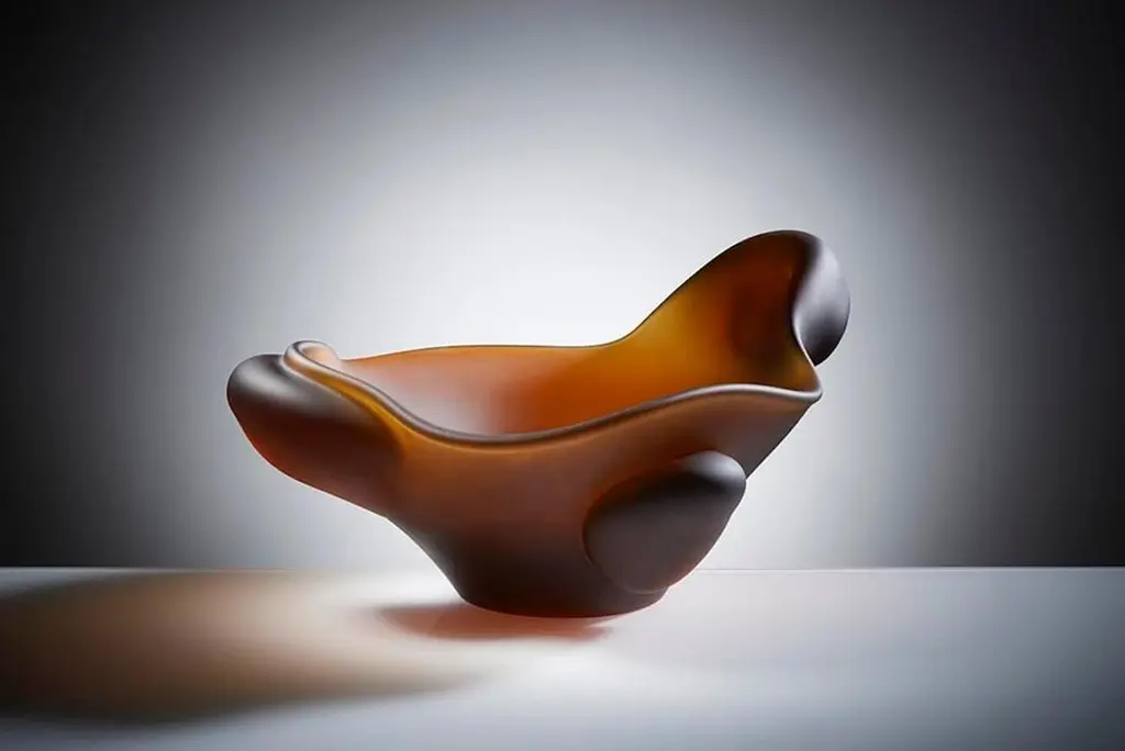 Anna Torfs slow glass bowl in green. Also available in mandarine (reddish orange), bronze and white.
