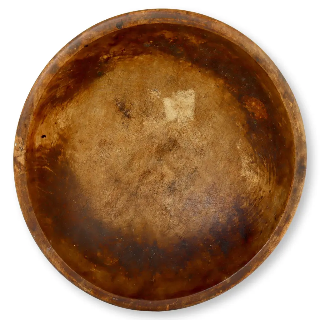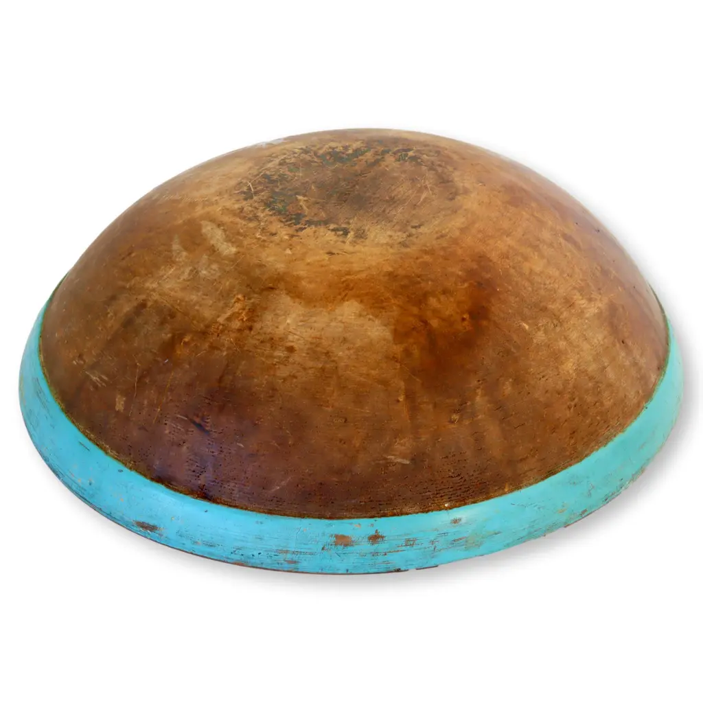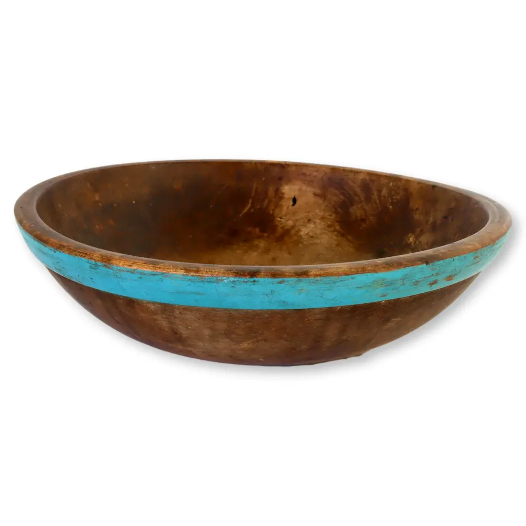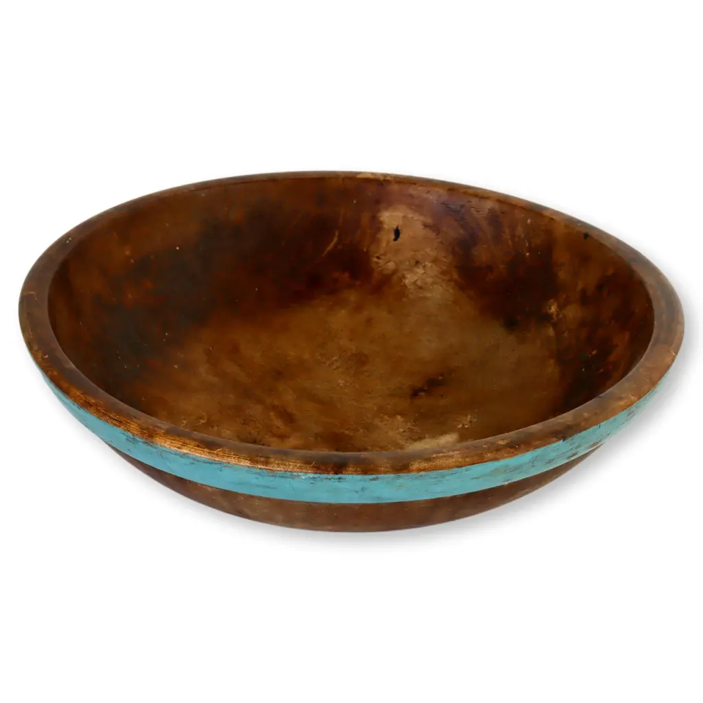 Beautiful antique primitive dough bowl with original finish. Unusual blue band around top rim.