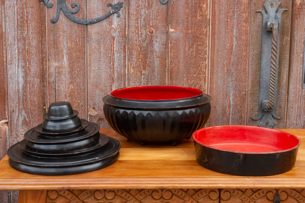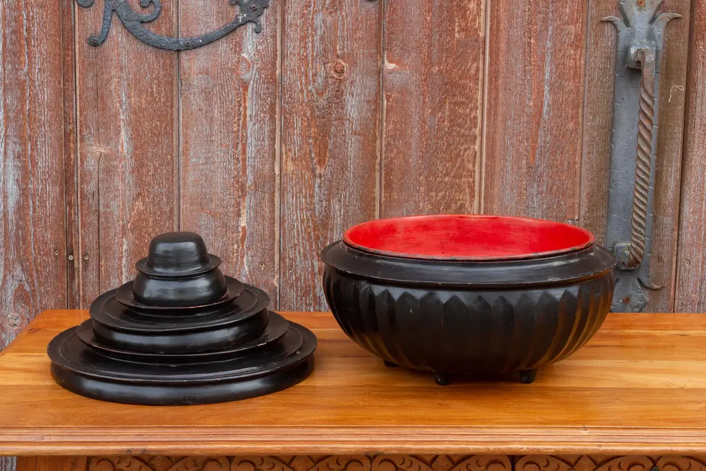 Antique Burmese Lacquer Monk Bowl Set