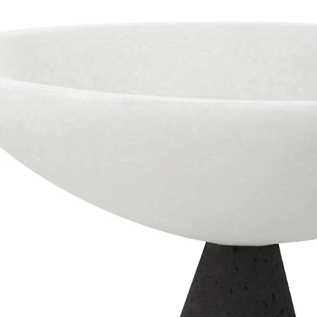 The Antithesis Bowls, Set 2 from Uttermost celebrates opposing forces through a yin-yang-inspired design approach. Each vessel balances on a conical pedestal that appears to defy gravity, creating a dynamic tension between the stable base and the open bowl. The stone material mimics rare Thassos marble without the associated maintenance concerns. Their opposing color schemes create dramatic contrast when displayed together while maintaining individual visual impact when separated. The shallow profile makes these pieces ideal for displaying ornamental objects or serving dry foods.