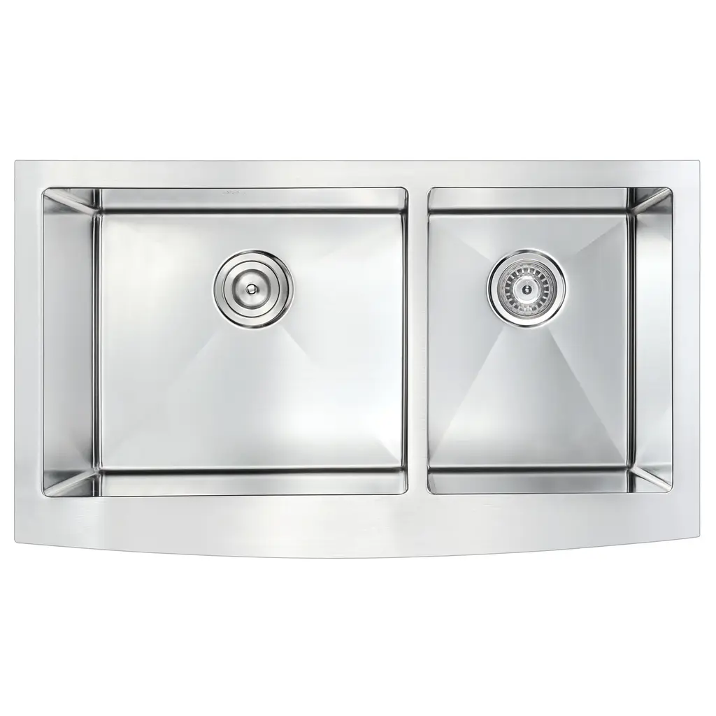 Anzzi Elysian 36" Farmhouse Double Bowl Kitchen Sink With Nickel Singer Faucet - Silver