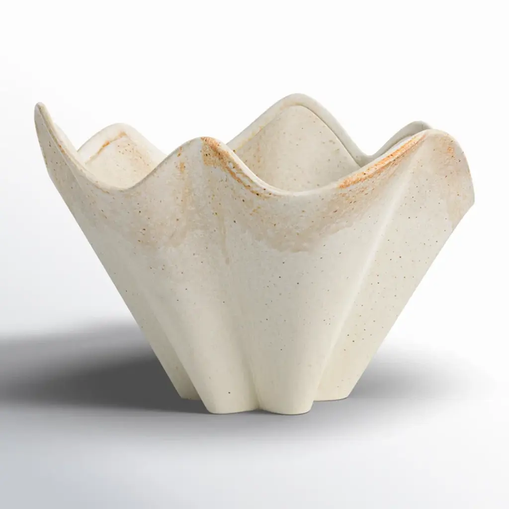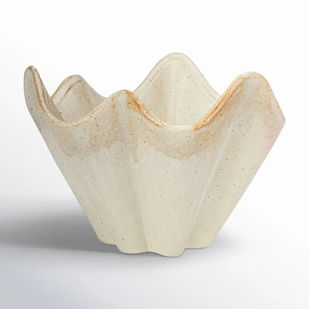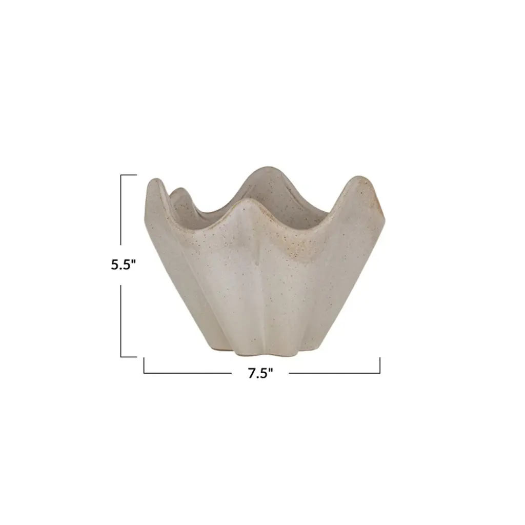 This cream stoneware ruffled bowl with reactive glaze is a charming and elegant addition to the tableware. The cream stoneware base provides a smooth and sturdy feel, while the ruffled edge adds contrast and sophistication. The bowl is a lovely choice for adding a touch of Scandinavian, boho, global, or modern style to the tableware. Use it to serve salads, soups, fruits, snacks, or any other dishes that need a beautiful presentation. The bowl is made of high-quality and durable stoneware with a reactive glaze that creates a subtle variation in color and texture for each bowl, making them one-of-a-kind pieces. The bowl is easy to clean and maintain and can be nested with other sizes for easy storage.