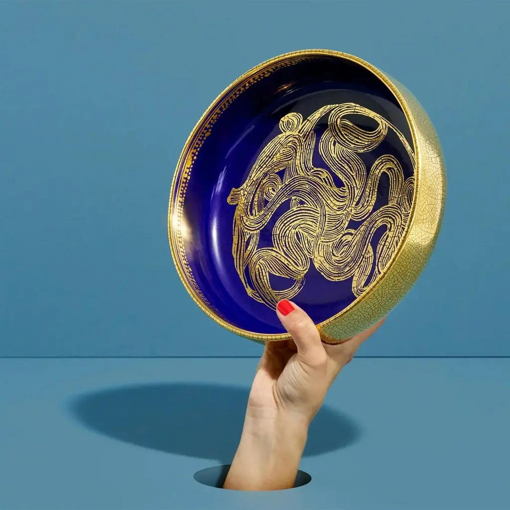 Bowl Arkan Blue all in earthenware with 24k crackeled gold plated and blue finish.Also available on request in Arkan White Bowl.