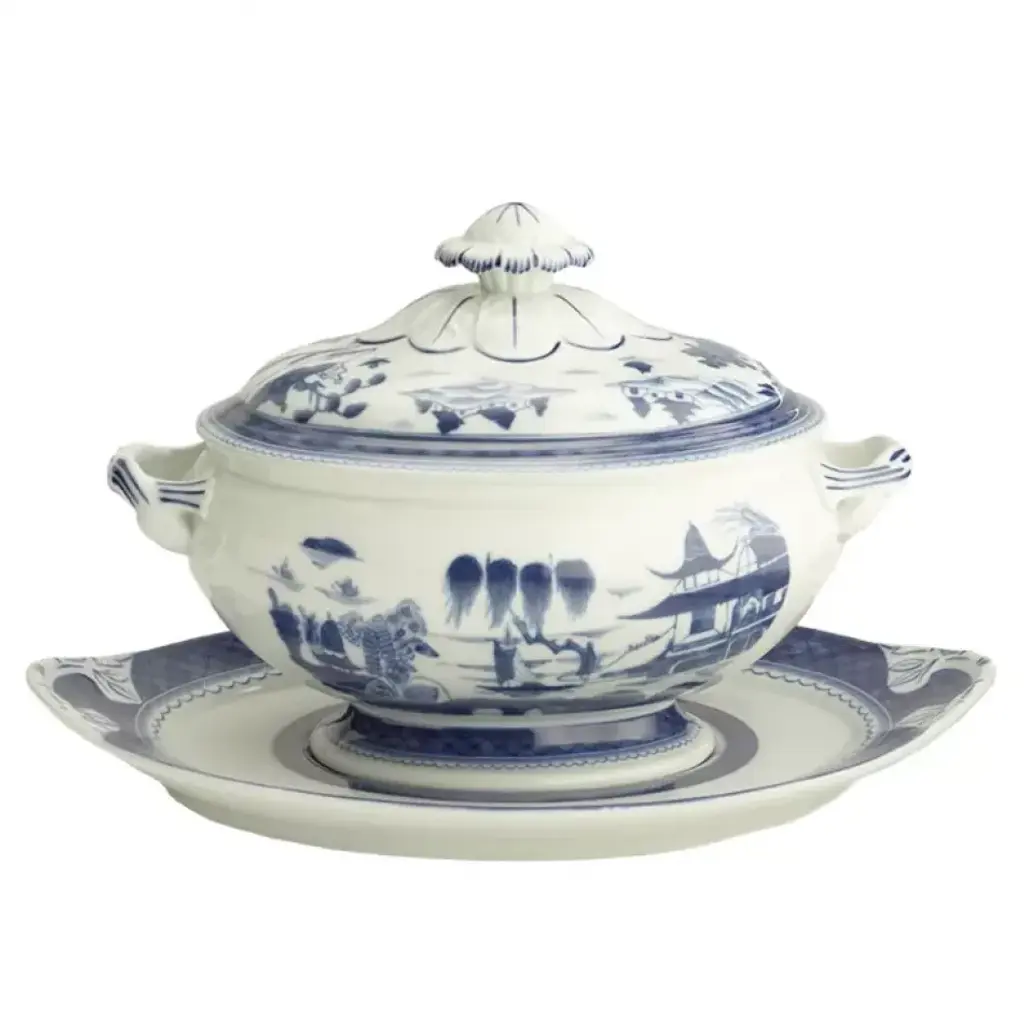 An elegant design in blue and white lends this set of porcelain bowls a timeless and sophisticated look.