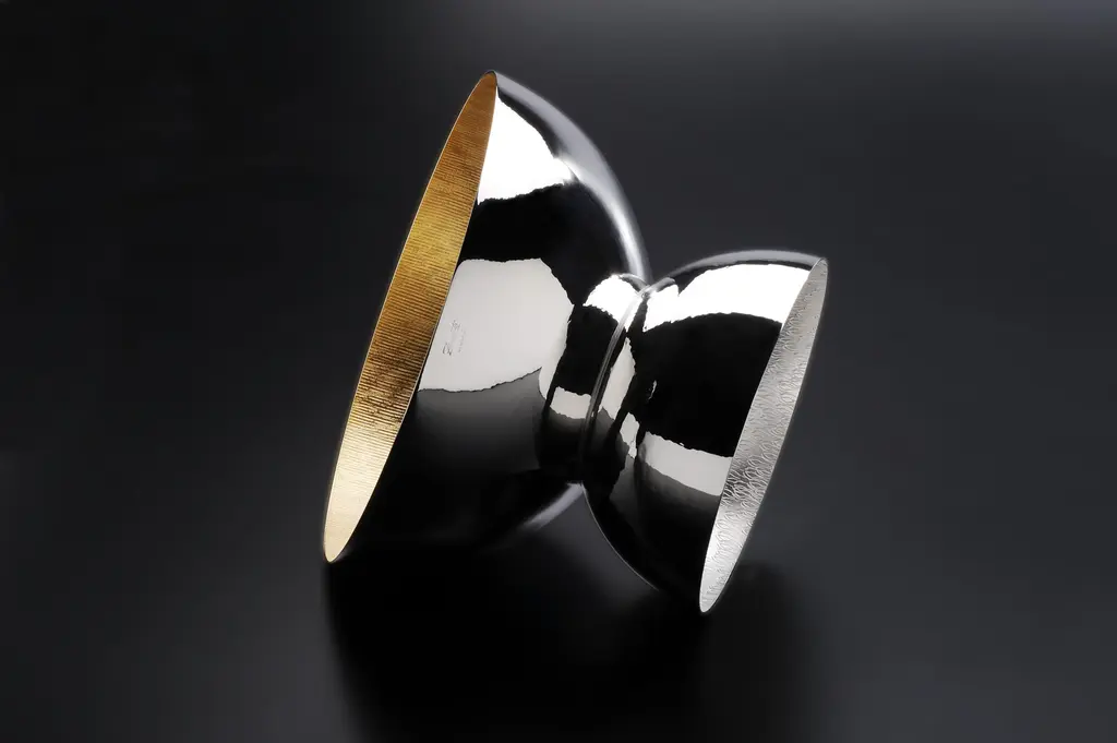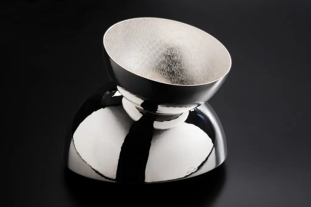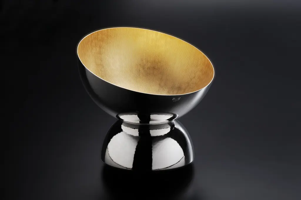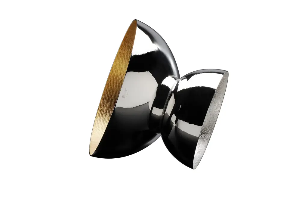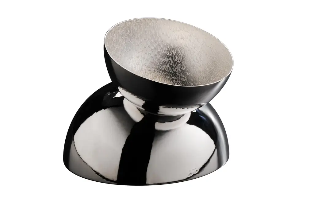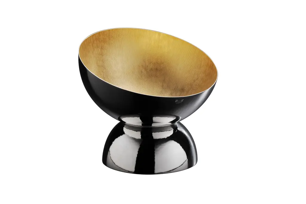 This bowl is made of silver alloy featuring the Corteccia and Fili textures with a polished finish on the outside and a gold satin interior.
