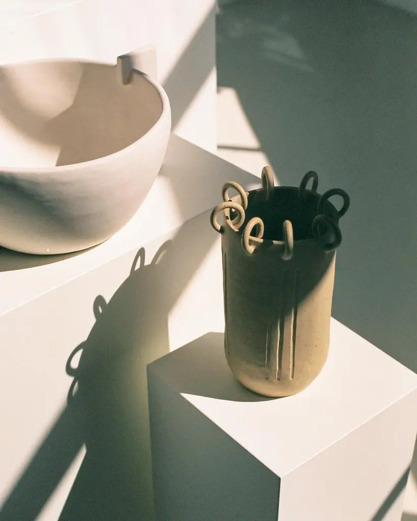 Avelaine Bowl by Cuit StudioOne of a Kind.Dimensions: D 30 x W 35 x H 16 cm.Materials: Stoneware white crackled matt.Due to the handmade process of this item, each piece will be unique and some variation is to be expected. Please contact us. This collection aims towards a sculptural and functional aesthetics by connecting elegant and organic shapes. The combination of modern and earthy materials with different finishes, creates a harmonic contrast to the eye.Inspired by our Mediterranean roots Cuit Studio wants to provoke and inspire people into a fresh, modern and playful style without losing a timeless sense of the space. Our aim is to create curated interiors combined with ceramic pieces that will uplift the space with an artisanal touch matching the interior design specially created for you.