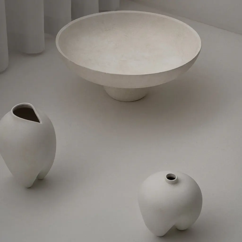 Balancing on top of a small bubble, the Babaru Bowl is a sculptural take on a traditional Japanese bowl design. Baburu, the Japanese name for bubble, comes in three different sizes, and can be used for both storage or stand alone as an artistic object to elevate a space. The series is made of ceramic as it is a hand glazed natural product, the colours may vary slightly and while it is not 100% waterproof, a bag for fresh flowers is included. Designed by Kristian Sofus Hansen & Tommy Hyldahl.