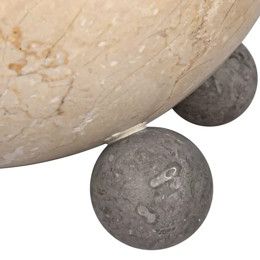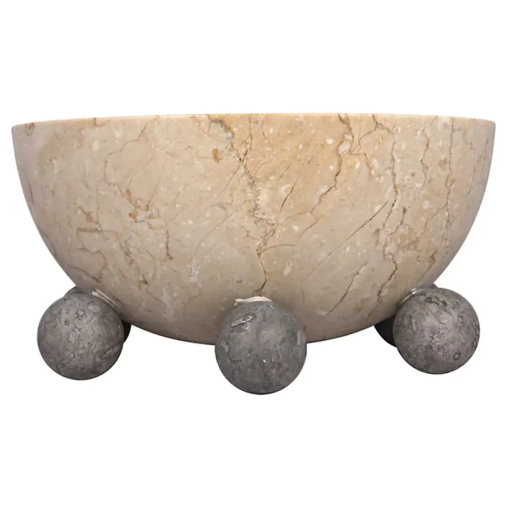 Meet the Bala Bowl from Noir, a masterpiece of artisan-crafted solid marble. This exquisite accent piece is meticulously designed with simple lines, allowing the natural beauty of the selected marble to take center stage. Surrounded by a series of sphere accents, the material's unique striations and veining create a captivating visual appeal that elegantly unites mid-century modern and contemporary styles, marrying the richness of marble with a design that effortlessly bridges classic and modern eras.