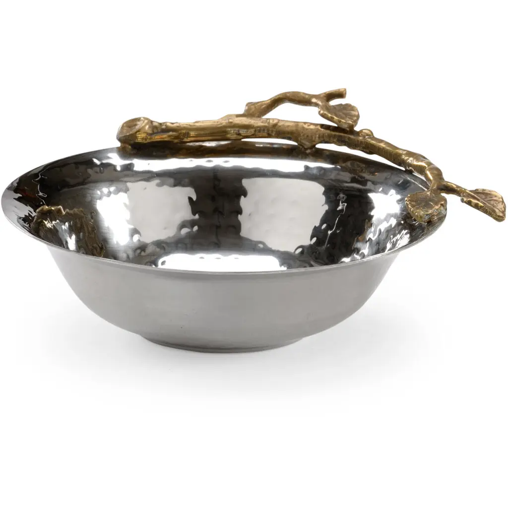 Hand-gilded 24K gold-plated bamboo accents are brilliantly incorporated into this serving bowl design and dramatically reflected in polished stainless steel. Prior to founding L’Objet in 2004, Israeli-born Elad Yifrach was a successful designer in Beverly Hills. He was creating beautiful interiors, but he was frustrated by the limited options available in home accessories, so he set out to create something better. L’Objet’s collections are diverse, but they are almost always inspired by nature and architecture. Many of his exquisite serving pieces rest in a base of hand-crafted gold foliage, other pieces feature intricate design and beadwork, and some of the most striking objects actually look like miniature buildings. And despite the lux feel, much of the line is practical with just a touch of whimsy.