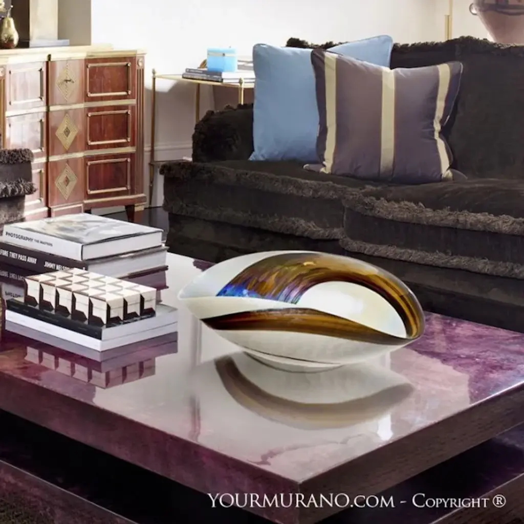 BARBACAN is a decorative centerpiece made of Murano glass to add a touch of elegance to every room in your home. It's also suitable as an elegant fruit bowl! Whether you are looking for an elegant object to decorate your dining room or for an original glass gift idea to impress someone, these decorative bowls in Venetian glass are an ideal solution. Find the perfect match for your home to create a one-of-a-kind interior design style to let anyone speechless! All products are handcrafted and prime production quality. Insubstantial variations in shape, size, colour, small imperfections and/or tiny air bubbles in the glass are not considered defects; they are inevitable and are typical of manual production of the glass and characterize handcrafted production.