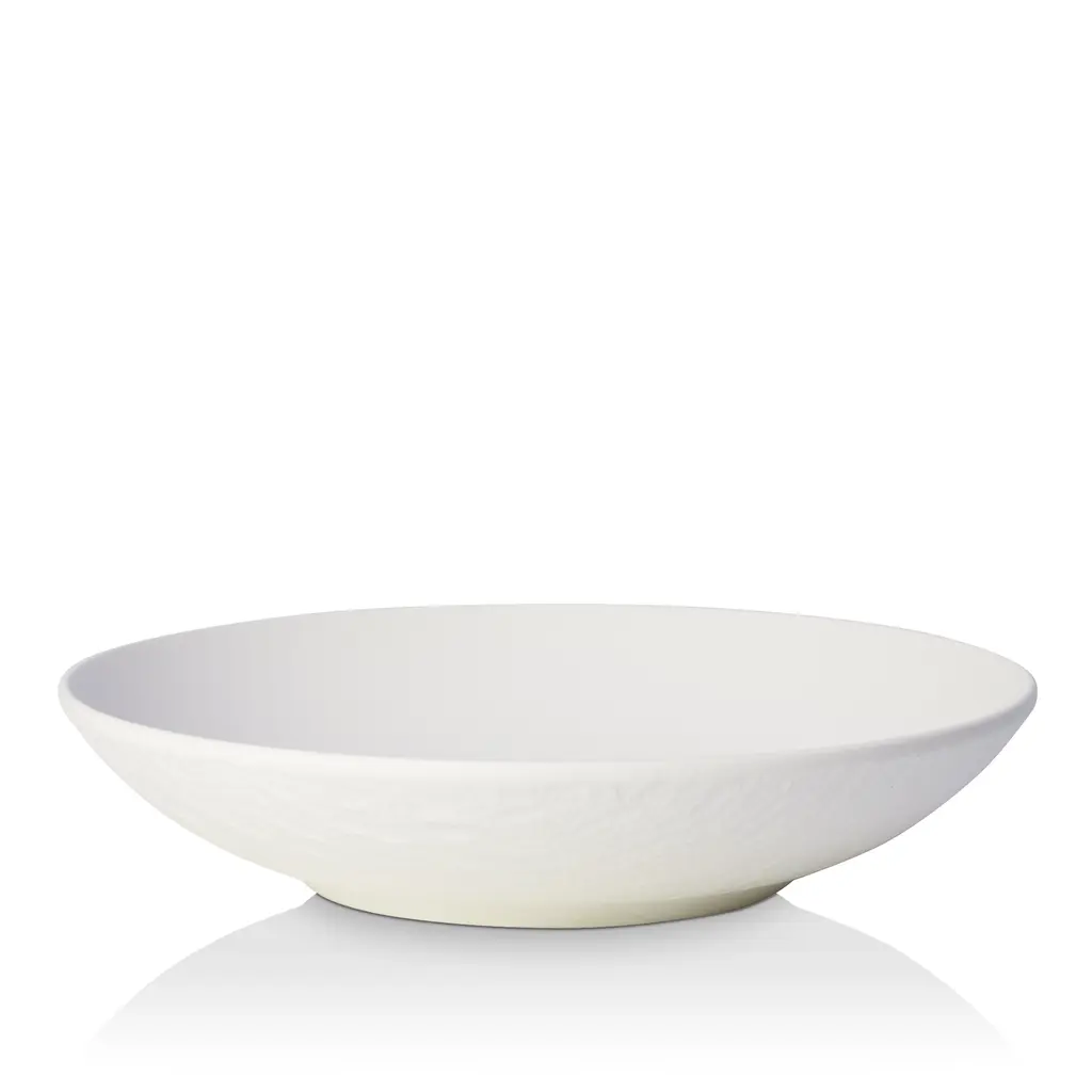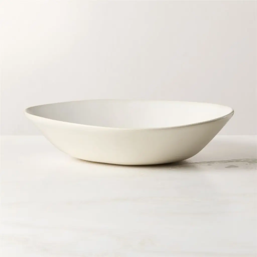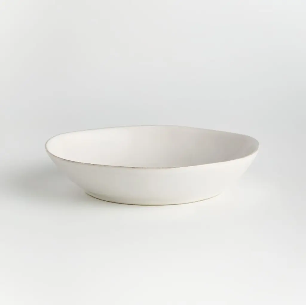 Elegant but designed for everyday, our versatile Daniel Humm dinnerware and serveware makes for a restaurant-worthy presentation of weekday meals as well as upscale dinner party creations. The chef designed this shallow bowl with an extra-wide rim to highlight your plating. Hand-finished by skilled craftspeople, the serving bowl is crafted with recycled stoneware and coated in a creamy off-white reactive glaze that makes each one unique. Layer with the rest of our Basel collection to set a table with plenty of character.Our collaboration with Daniel Humm, chef-owner of Eleven Madison Park and Clemente Bar in New York City, is a celebration of simplicity, beauty and function for the table and beyond.