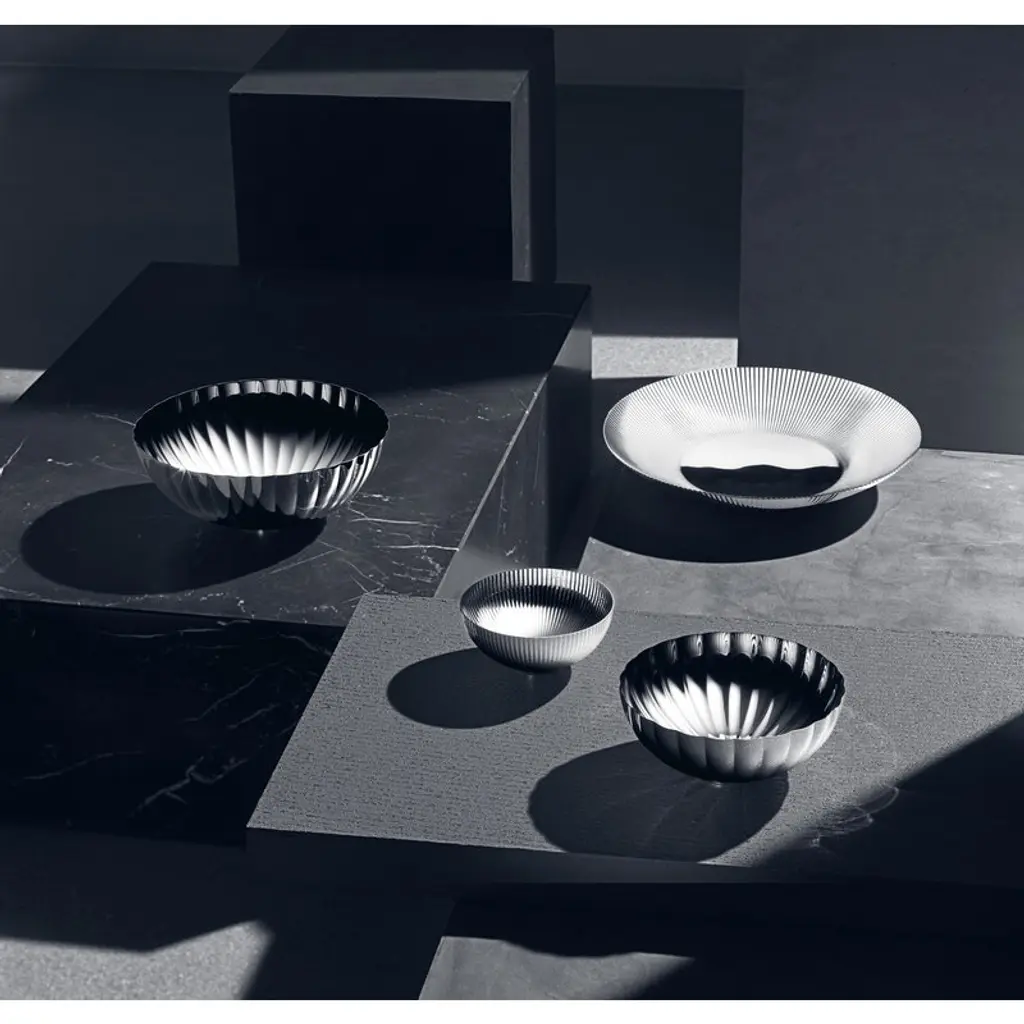 Georg Jensen's Bernadotte bowl is made of stainless steel and decorated with delicate grooves. The large bowl can be used, for instance, as a salad or fruit bowl. The Bernadotte collection is a true Scandinavian design icon, and even today one of the most popular Georg Jensen collections. The elegant collection is named after its original designer, the Swedish Prince Sigvard Bernadotte. The first products in the collection were designed in the 1930s when the design world was heavily influenced by the functionalist movement. Characteristic to both the era and the designer, Bernadotte beautifully combines practicality to clean-lined elegance. Bernadotte is the perfect choice for all design enthusiasts who value quality and beautiful, timeless design.