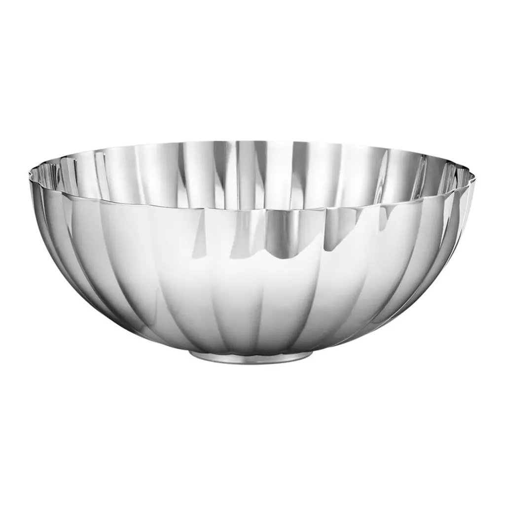 With the signature grooves of Sigvard Bernadotte’s work radiating out across its surface, this beautifully crafted low decorative bowl has a sculptural quality that is totally contemporary. Fill with fruit or flowers or leave empty as a striking centrepiece to the table. Sigvard Bernadotte was one of Georg Jensen’s earliest and most influential design collaborators. His classic silver pieces now inspire the Bernadotte collection with details being transferred to stainless steel to reach a whole new audience. The Bernadotte low bowl is expertly made from stainless steel with a mirror polish that highlights the ridged texture.