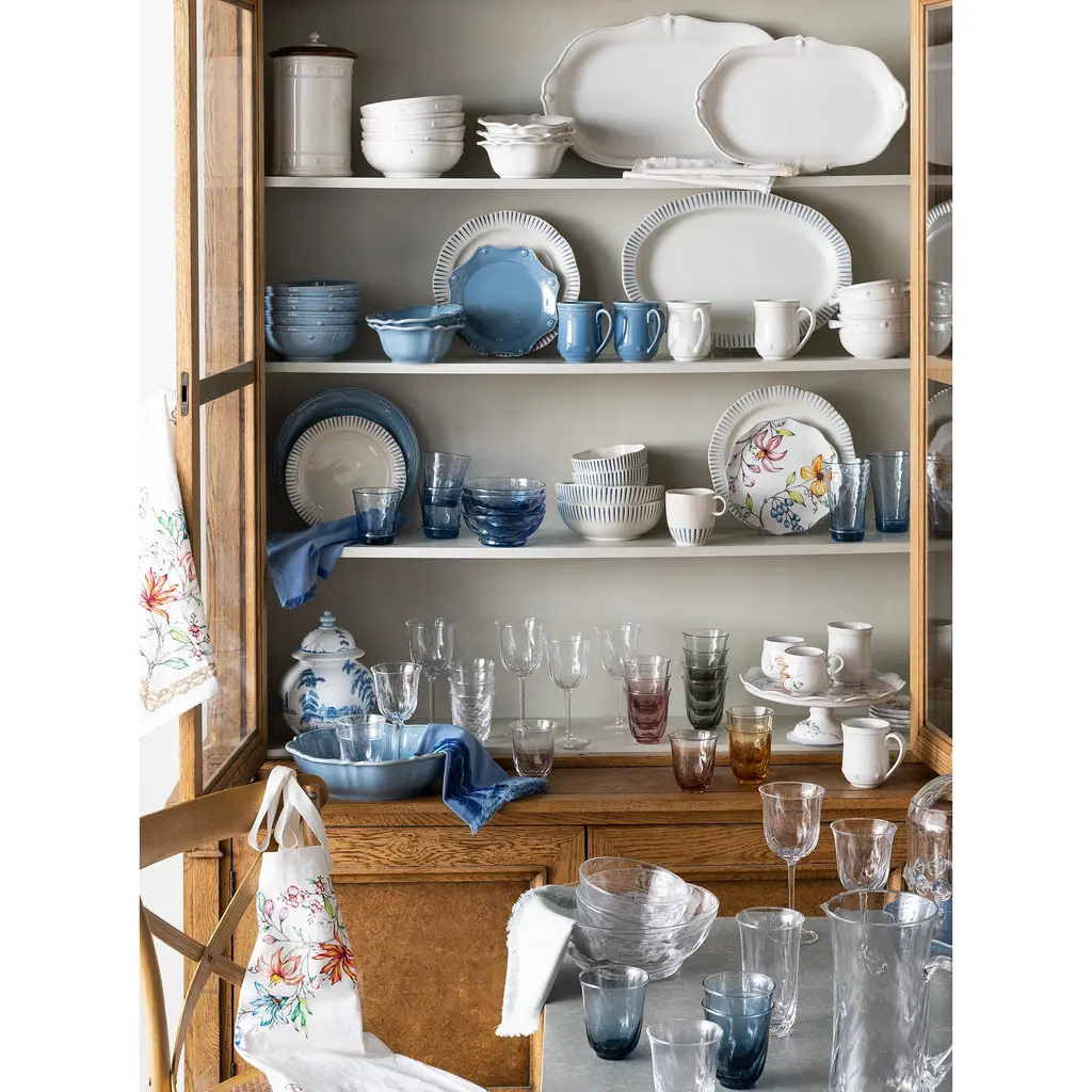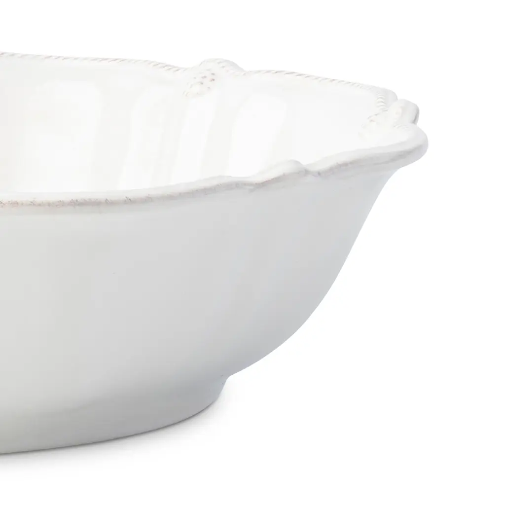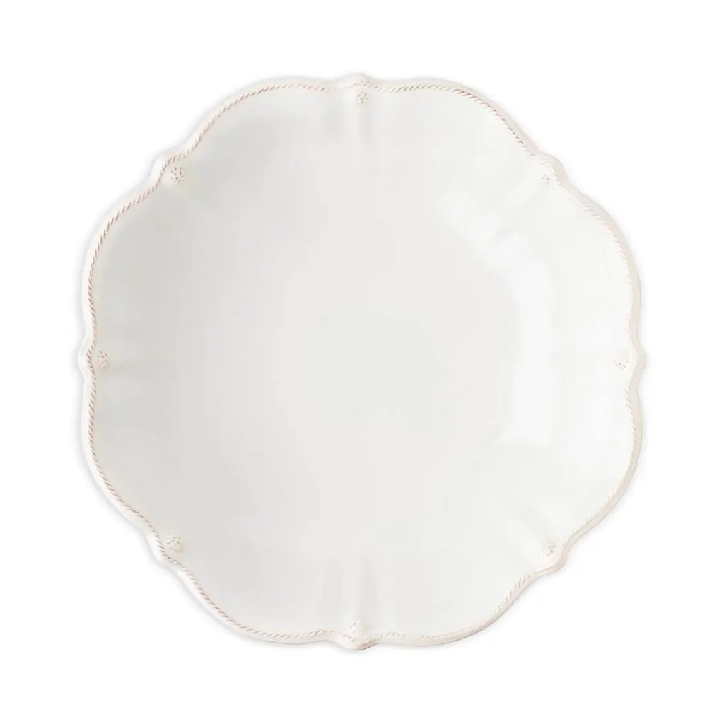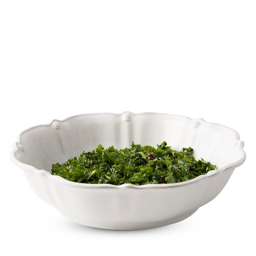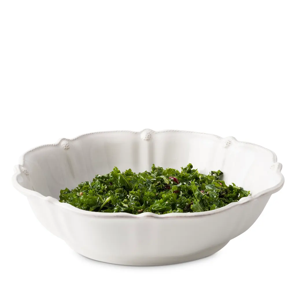 From Juliska's Berry & Thread Collection- With the subtly ruffled elegance of an unfurled rose the wide basin of this large bowl makes everything it contains look lovely from summer salads to pixie tangerines. Portuguese stoneware ceramics echo the same artisanal production as Juliska glassware. They have developed a variety of exquisite transparent, opaque, and metallic glazes on a tough Portuguese stoneware body. All are lead free and each has the same tough durability to handle the most demanding everyday use.