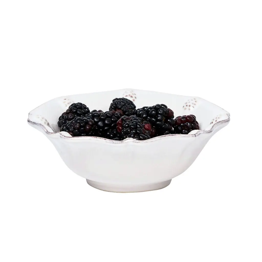 From our Berry & Thread Collection - We've dressed our Berry Bowl with charming details - ruffled fluting, a scalloped edge, and a sprinkling of berries. Perfect for nuts at the fireside or candies on your desk.