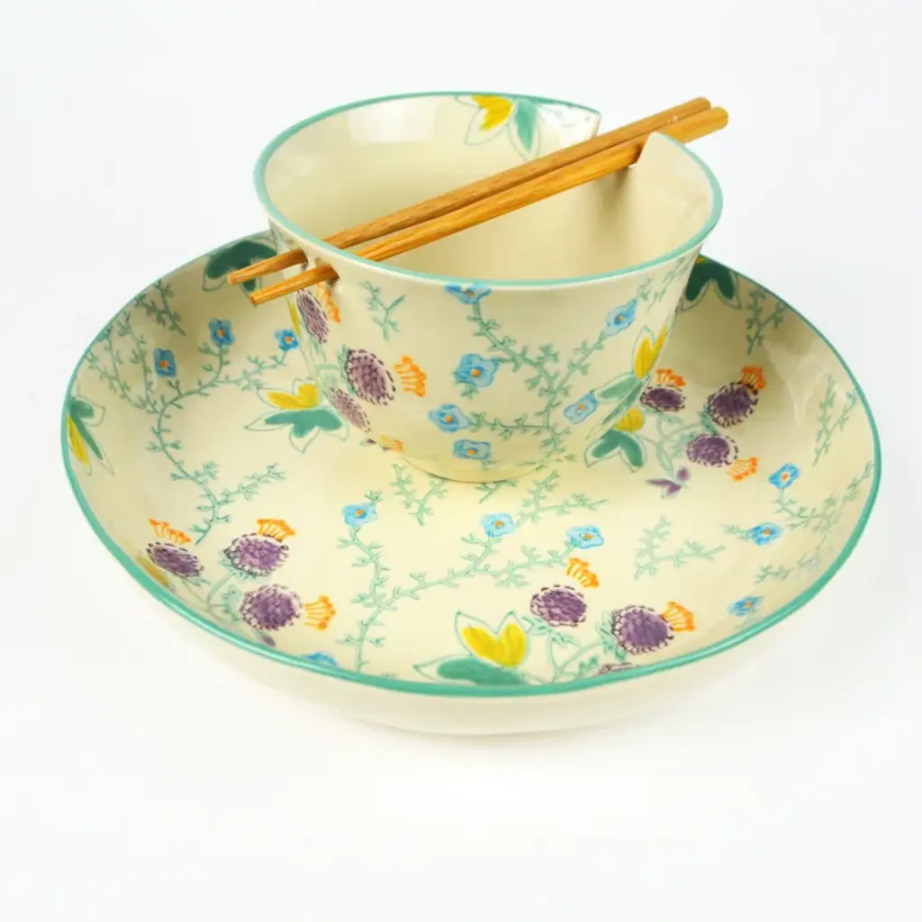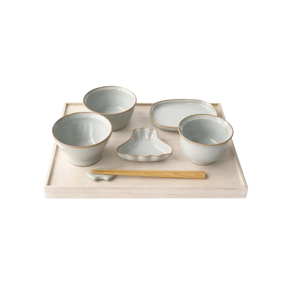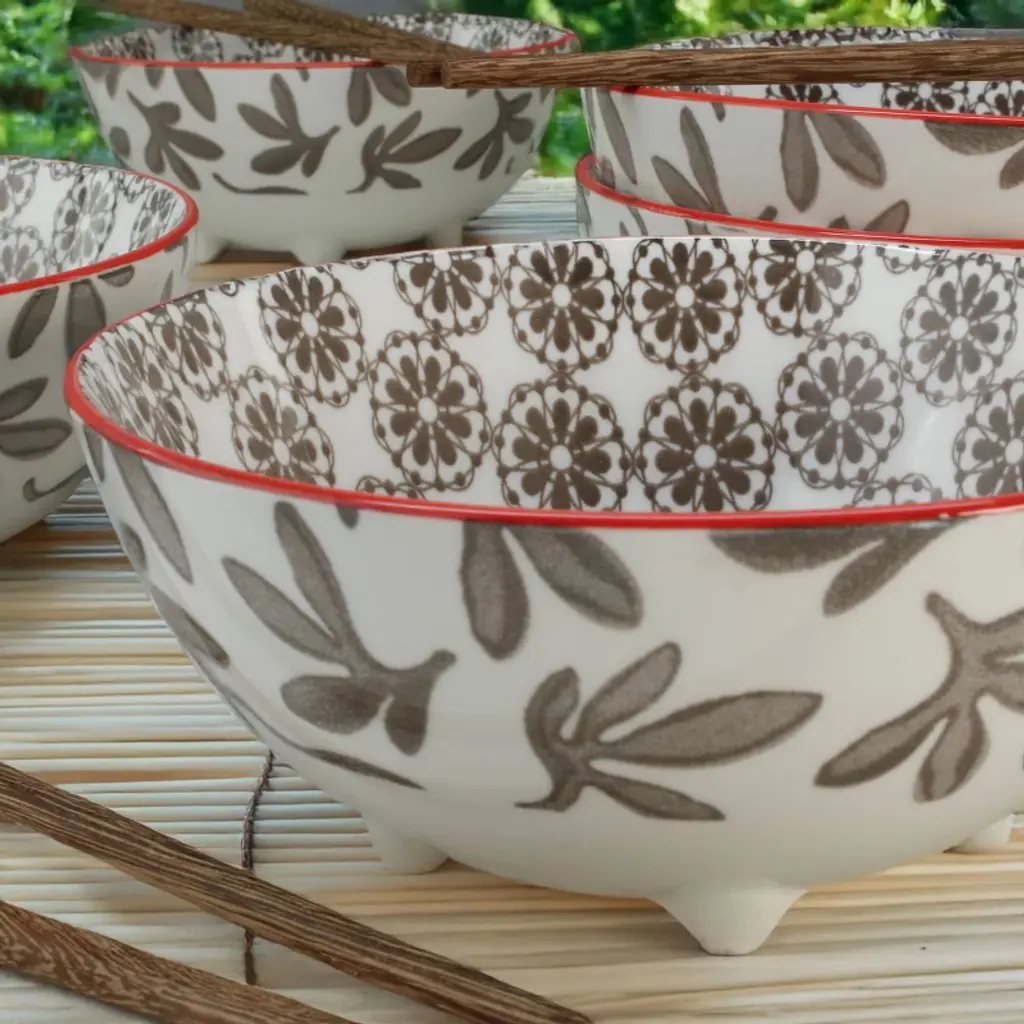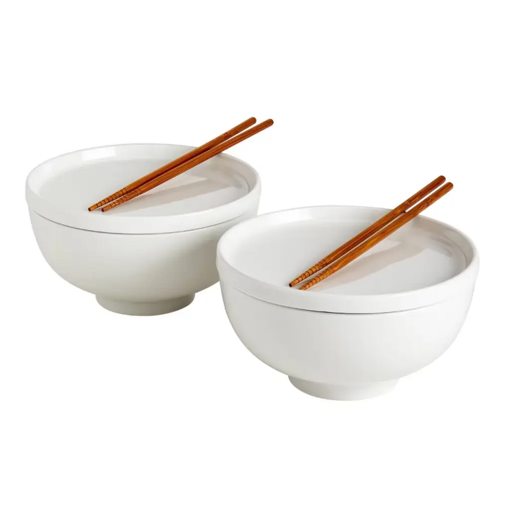 Bia Cordon Bleu Set Of 8 6" Grace Footed Bowls With Jichimu Wood Chopsticks