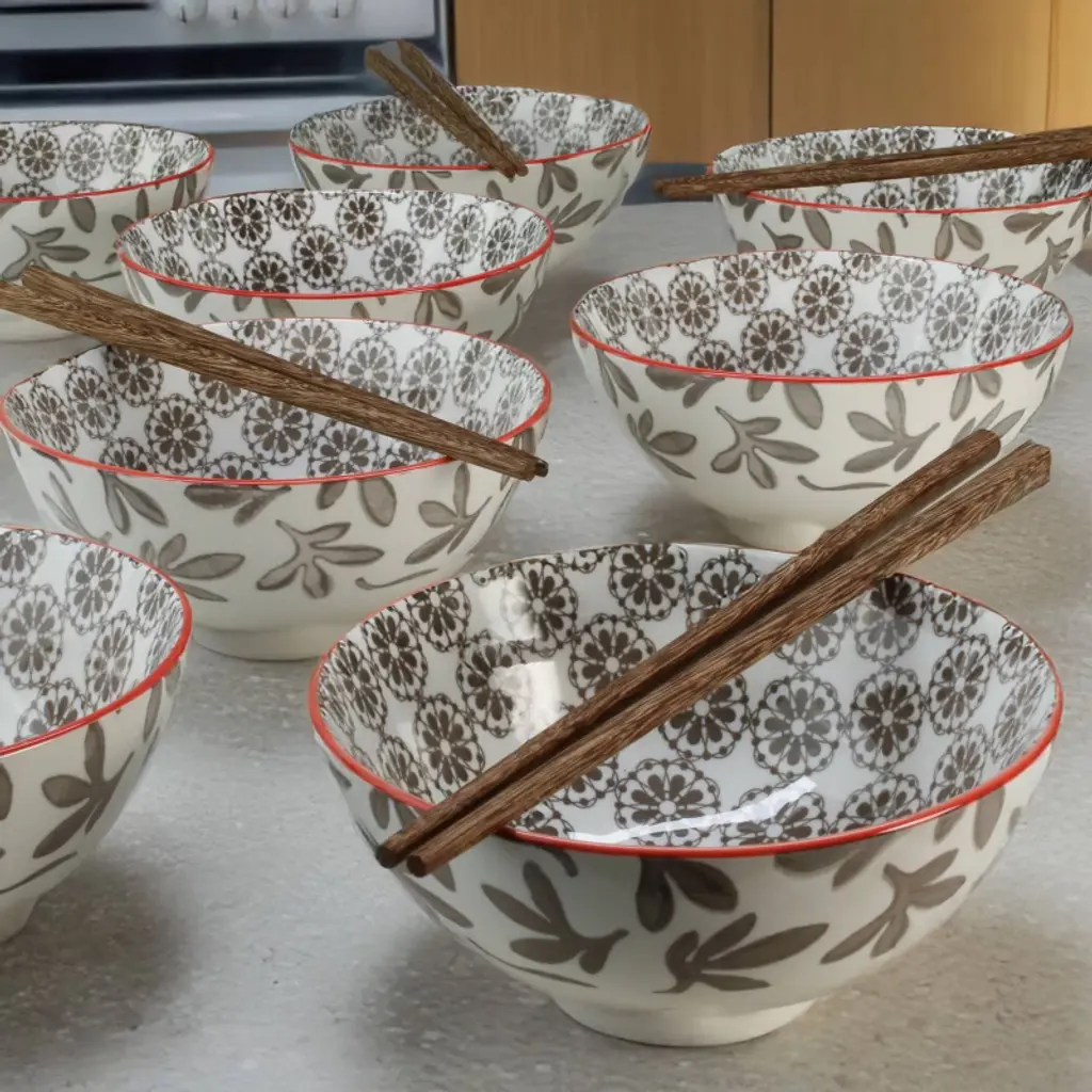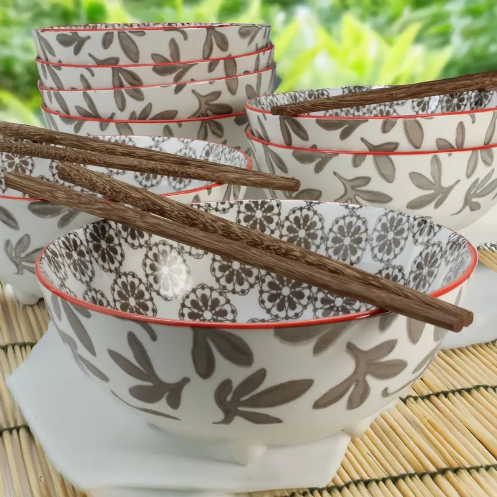 Crafted with elegance in mind, the BIA Cordon Bleu Stoneware Set of 8 Ooh La La Grace Footed Bowls in Grey adds a touch of sophistication to your table setting. This set includes 8-6"bowls with a capacity of 24 oz. each, perfect for serving individual portions of soups, desserts, or salads. Made from durable stoneware in a chic gray hue, these contemporary bowls feature a simple yet unique design that effortlessly blends in with any decor. Eight sets of Jichimu wood chopsticks are included for you to enjoy your favorite noodle dishes. Jichimu wood has deep brown and gray patterns which resemble the patterns of bird feathers. The bowls are safe for use in the oven, microwave, and dishwasher, these versatile bowls offer both style and practicality in one. Elevate your dining experience with these Grace Footed Bowls that allow you to mix and match with other colors for an eye-catching presentation. BIA Cordon Bleu: Designed With Modern Sensibility For Wherever You Live, However You Cook, And Whenever You Entertain.