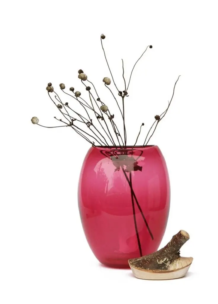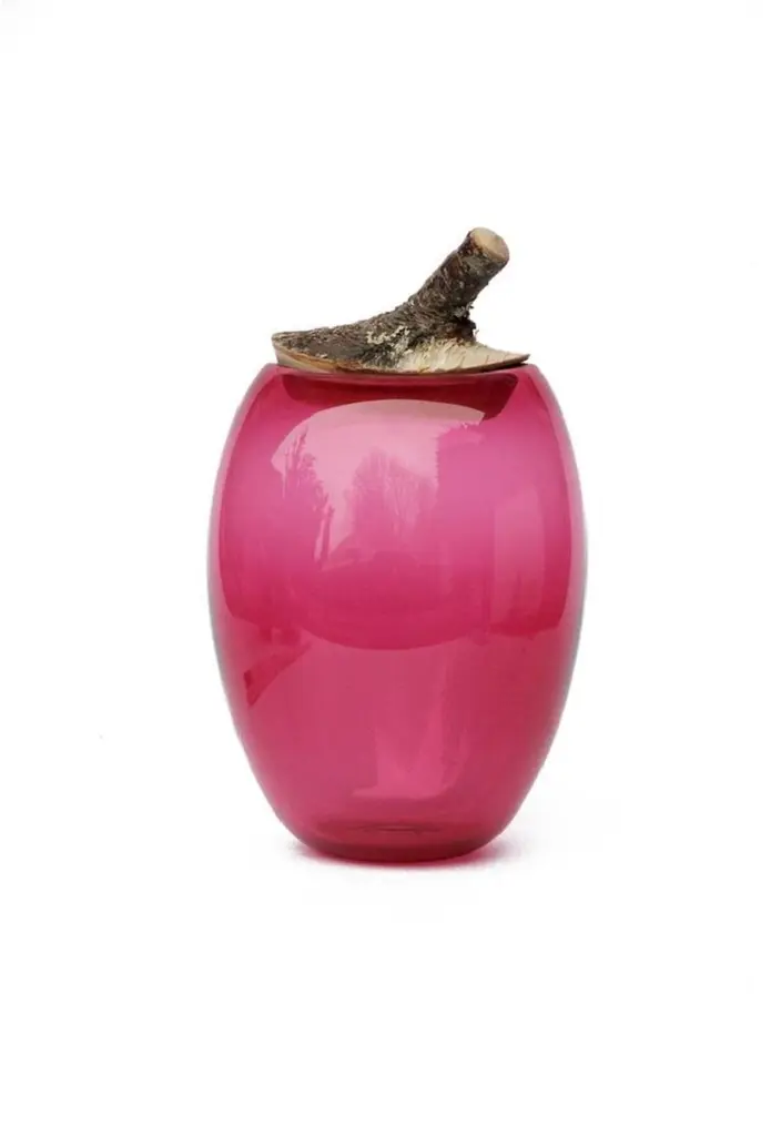 Big Hot Pink Branch Bowl, Pia Wüstenberg.Dimensions: D 18 x H 24.Materials: glass, wood.Available in other colors.A playful jar, with a lid made from a branch stub following the curvature of the glass. Branch Bowls are blown without a mould: their outer rim is originally the inside of the glass bubble, thus their round and soft edges, characteristic of this artistic process.Handmade in Europe: freehand blown glass (England), wood (Finland).The materials then come to our warehouse in North Germany where they are fitted and assembled.Pia Wüstenberg, UtopiaPia Wüstenberg is a creative with a passion for materials and craft. She graduated from the Royal College of Arts Design Products course in 2011 and was running her own freelance studio in East London till summer 2017. After this her studio relocated to rural North Germany, allowing better access to the European crafts and more time to dream. Pia is a freelance designer at Utopia and utility and owner of the brand (which involves everything from heavy lifting to drawing up new ideas).