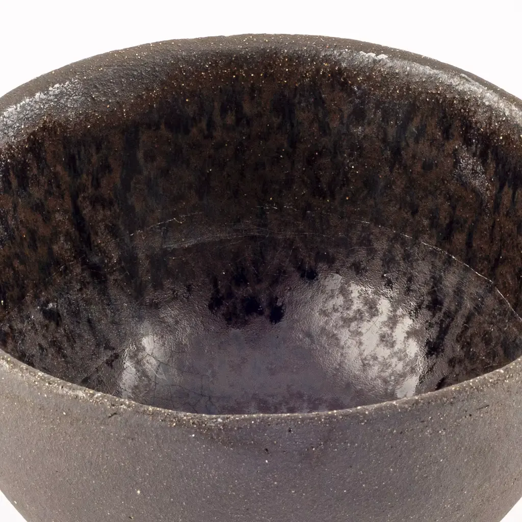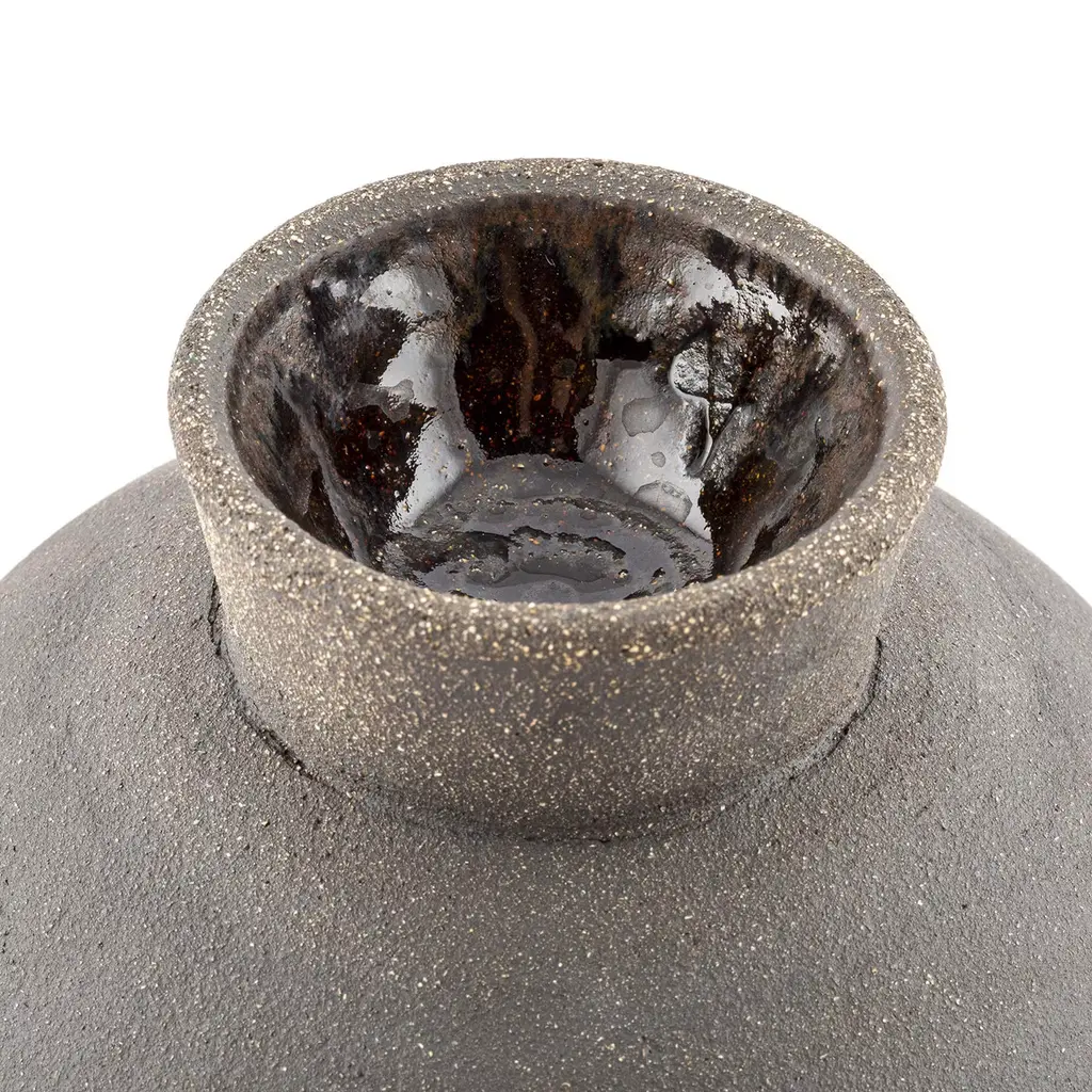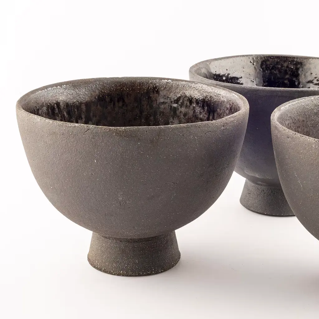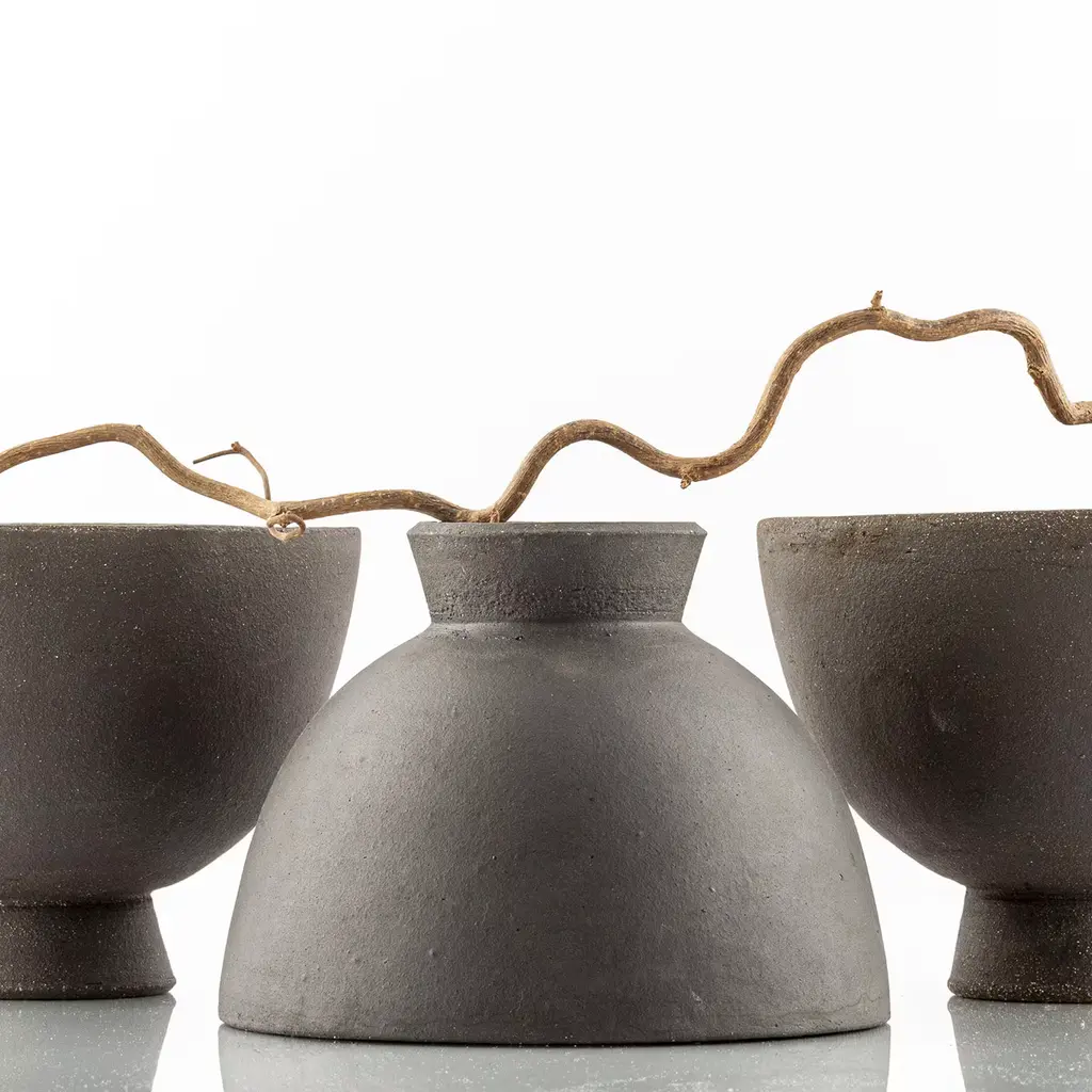 A one-of-a-kind objet d'art that will function as a centerpiece for vibrant floral arrangements on a refined dining table, this splendid bowl is entirely handcrafted of black stoneware, internally finished with a polished glaze. Unique in its handcrafted design, no two pieces are alike. Not suitable for alimentary use.