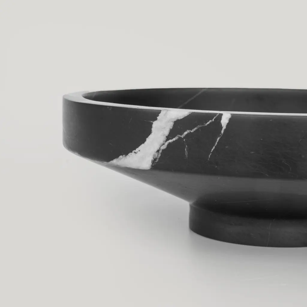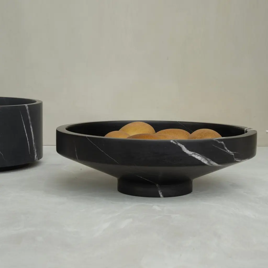Introducing our exquisite black marble narrow bowl, a fusion of elegance and functionality. Crafted from luxurious black marble with, this stunning bowl is a testament to timeless beauty and sophistication. Whether displayed as a decorative accent on a coffee table or used as a chic fruit bowl in the kitchen, its rich hues and natural veining will effortlessly elevate your decor.Each bowl is meticulously handcrafted, ensuring that no two pieces are exactly alike, adding a unique charm to every setting.
