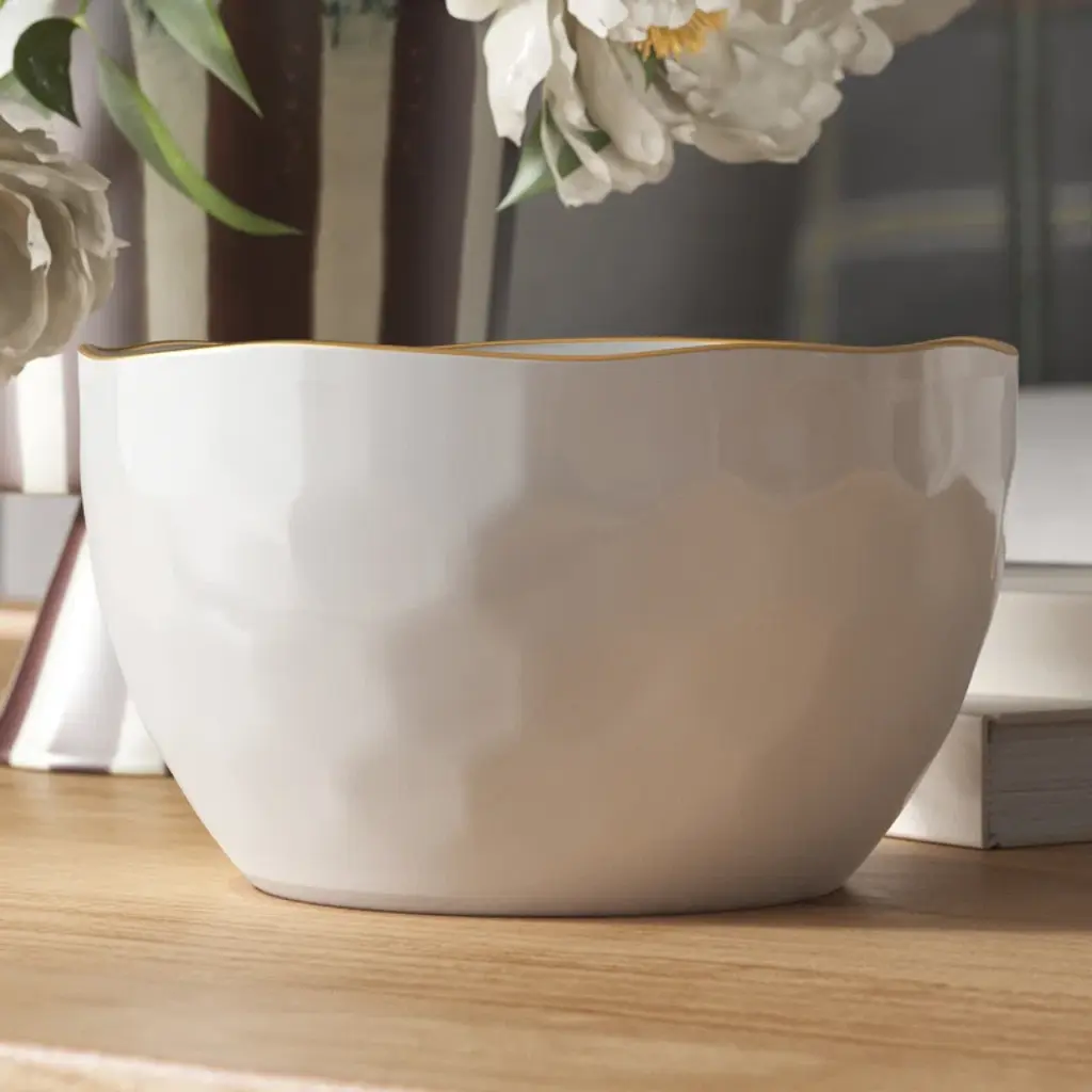 Our round stoneware bowl adds an elegant touch to any space. Machine-made to ensure precision and consistency, this decorative piece boasts a smooth surface and a sophisticated look. It's perfect for displaying on a coffee table, shelf, or as a centerpiece. Let this versatile bowl be the canvas for your creative styling – fill it with fruit, decorative orbs, or simply let it shine on its own.