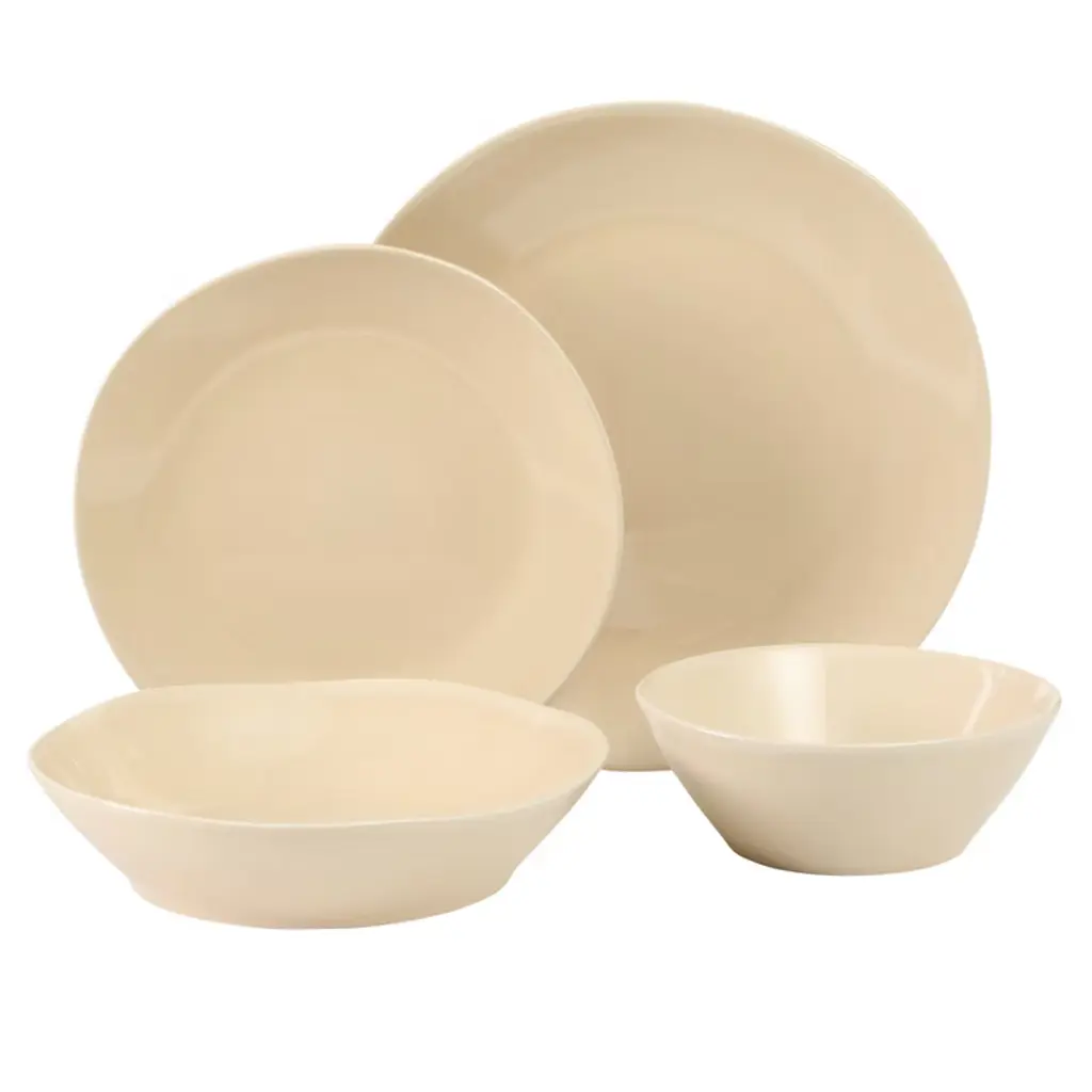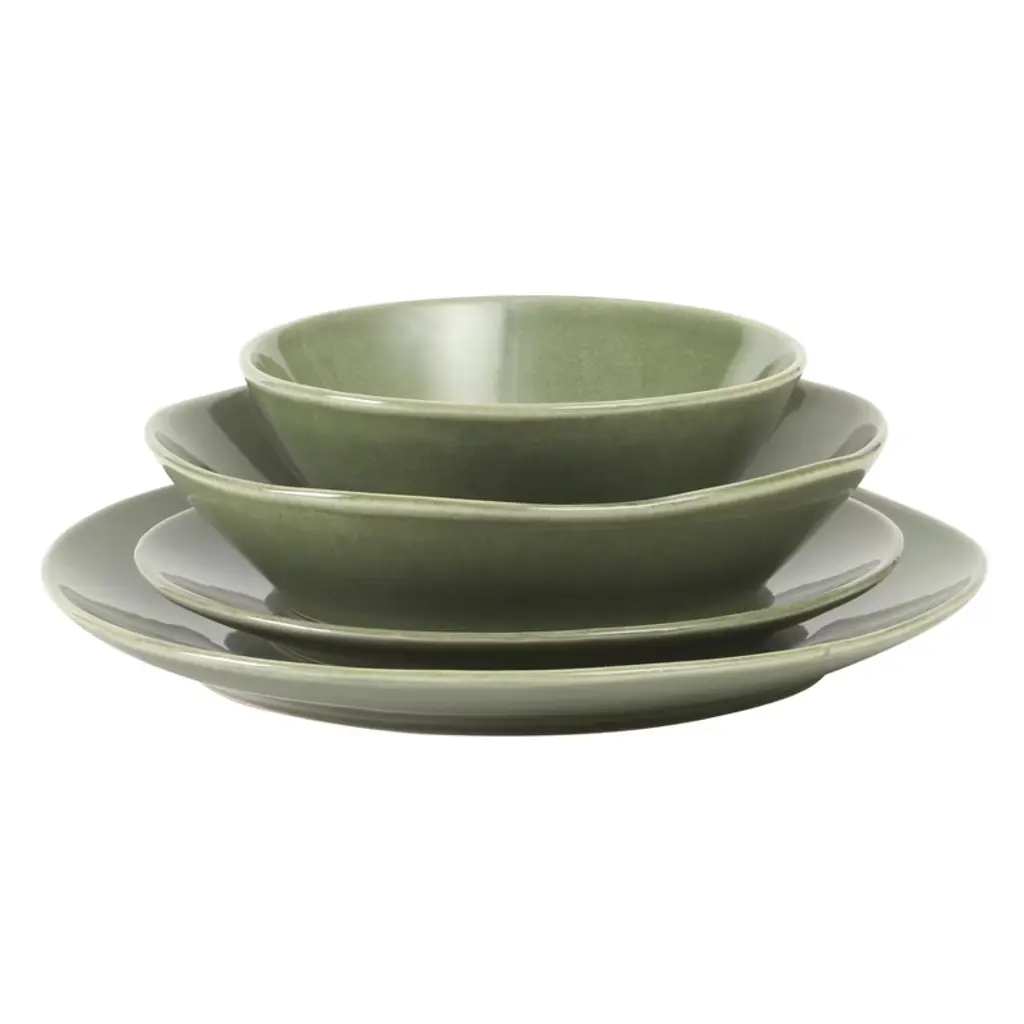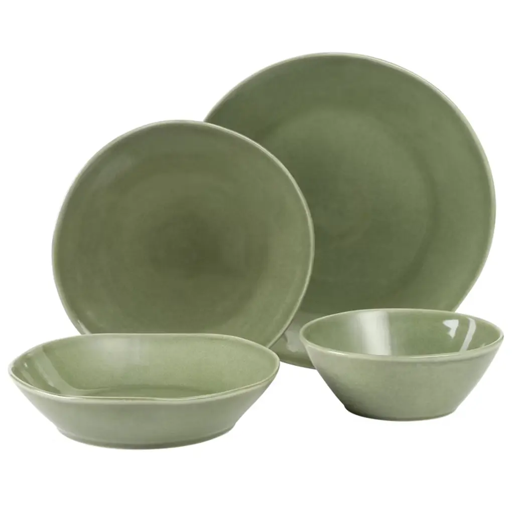 Tablescaping at home easily transforms tables into works of art. The Montecito Breeze Dinnerware Collection showcases handmade-inspired plates and bowls that smoothly fit into both casual suppers and celebratory affairs. Crafted with color and character, this stoneware dinnerware set stages the finest ingredients against its glossy, reactive glaze finish. The combination of its artisanal finish and shape creates an organic design to make it truly yours and one-of-a-kind. Suitable for a service for four, this is a special curation of dining pieces from bloomhouse® to show that tablescaping is both a discipline and a pleasure - welcoming guests and encouraging them to keep coming back for more memories to come. Dishwasher and microwave safe. Borrowing from centuries-old practices and tradition of pottery and ceramics, the bloomhouse™ Santorini Mist 16-piece Terracotta Dinnerware Set captures the naturally rustic landscapes of our Earth in vibrant hues and subtle variations. Expect artisanal elegance from the clay-based terracotta craftsmanship to elevate any place setting - from quiet meals to your most awaited celebrations. Modern, stackable shapes upscale the everyday table and offer a utilitarian function to nest neatly in any kitchen cupboard or storage. Peppered with artisanal flecks, each plate and bowl features a reactive glaze finish for a collection that is rich in character and full of life. Dishwasher and microwave safe.bloomhouse™ is a collection of modern-day kitchen and dining pieces that empower spirits, honor our Earth and celebrate its people. Driven by a responsible, nature-positive ethos, bloomhouse™ aspires to share a lifestyle that's good for you and good for the planet. With a mission rooted in purpose, bloomhouse™ will plant a tree on your behalf with every set sold in partnership with the non-profit organization One Tree Planted.Cook, dine, bake, store, drink - and raise a glass with us. Nourish is Our Nature, and now it's yours too. WHAT’S IN THE BOX: Service for 4 that includes four of each of the following: 10.3 inch dinner plates, 8.3 inch salad/starter plates, 8.6 inch all purpose meal bowls, & 6.4 inch everyday bowlsONE TREE PLANTED PER SET SOLD: bloomhouse is proud to partner with ONETREEPLANTED to plant a tree for every dinnerware set sold.EARTHY TERRACOTTA: Clay-based terracotta dinnerware set is ideal for your most imaginative tablescapes when entertaining at home, or simply as an everyday pleasureSTACKABLE SHAPES: Raised edges allow for convenient stacking, compact storage and easy indulgence.UNIQUE VARIATIONS: Each plate and bowl features artisanal flecks to reflect the artistry of reactive glazing techniques on these modern ceramic designs.NOURISH IS OUR NATURE: bloomhouse is a collection of modern-day kitchen and dining pieces that empower spirits, honor our Earth and celebrate its people. Driven by a responsible, nature-positive ethos, bloomhouse aspires to share a lifestyle that's good for you and good for the planet.EASY-CARE FOR YOUR DINNERWARE: Dishwasher and microwave safe
