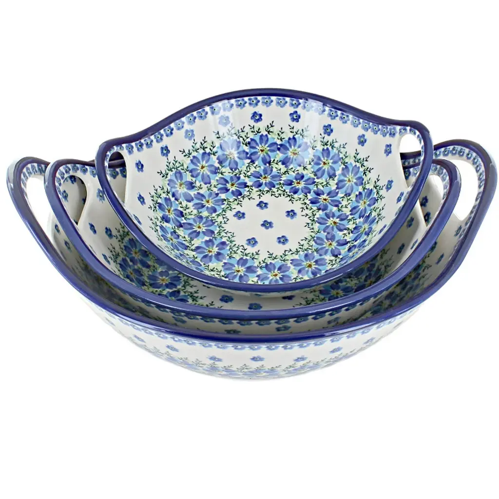 Bring both artistry and function into your kitchen with this 3-Piece Mixing Bowl Set, a versatile collection youÂ’ll reach for every day. Thoughtfully designed to cover all your cooking and serving needs, the set includes three sizes: a small bowl (6.25" diameter x 3.75" high), a medium bowl (8" diameter x 4.75" high), and a large bowl (10.2" diameter x 6" high). These bowls are perfect for mixing batters, preparing salads, serving side dishes, or even displaying fresh fruit on your counter. Each piece is carefully handmade and hand-painted in Poland, carrying on centuries of tradition and featuring vibrant patterns that make every set unique. Crafted from durable, high-quality stoneware, these bowls are built to last and offer the benefit of even mixing, excellent heat retention, and easy cleanup. Safe for the microwave, dishwasher, and freezer, theyÂ’re designed for modern convenience without sacrificing authentic charm. Whether youÂ’re baking for family, entertaining guests, or simply enjoying everyday meals, this 3-piece mixing bowl set combines timeless beauty, practicality, and long-lasting craftsmanship.